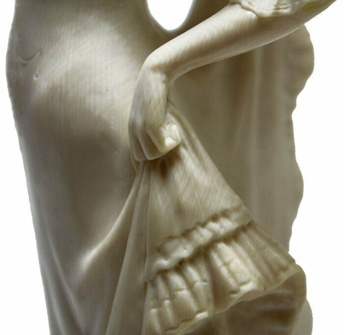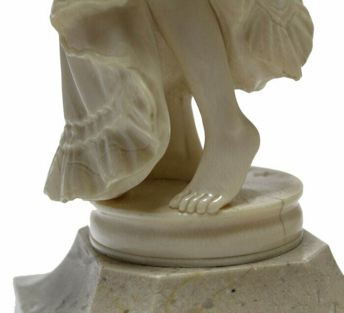 Мраморное основание служит якорем для этого эфемерного создания, позволяя ему зависнуть между землей и воздухом, между реальностью и мечтой. Этот постамент не просто удерживает скульптуру, но и усиливает ее полет, превращая ее в символ того, что истинная красота — это всегда баланс между силой и хрупкостью, между мгновением и вечностью.