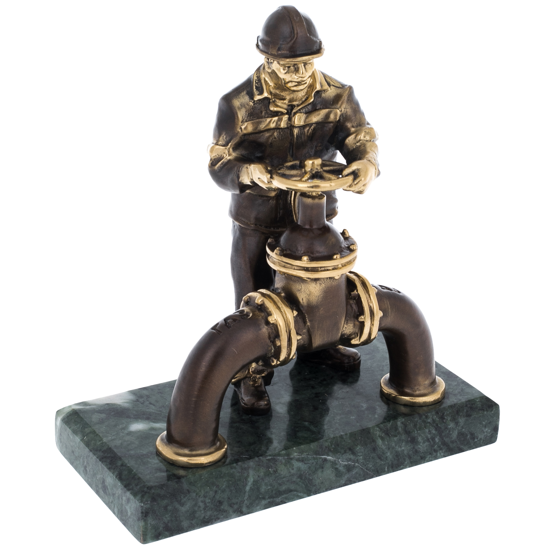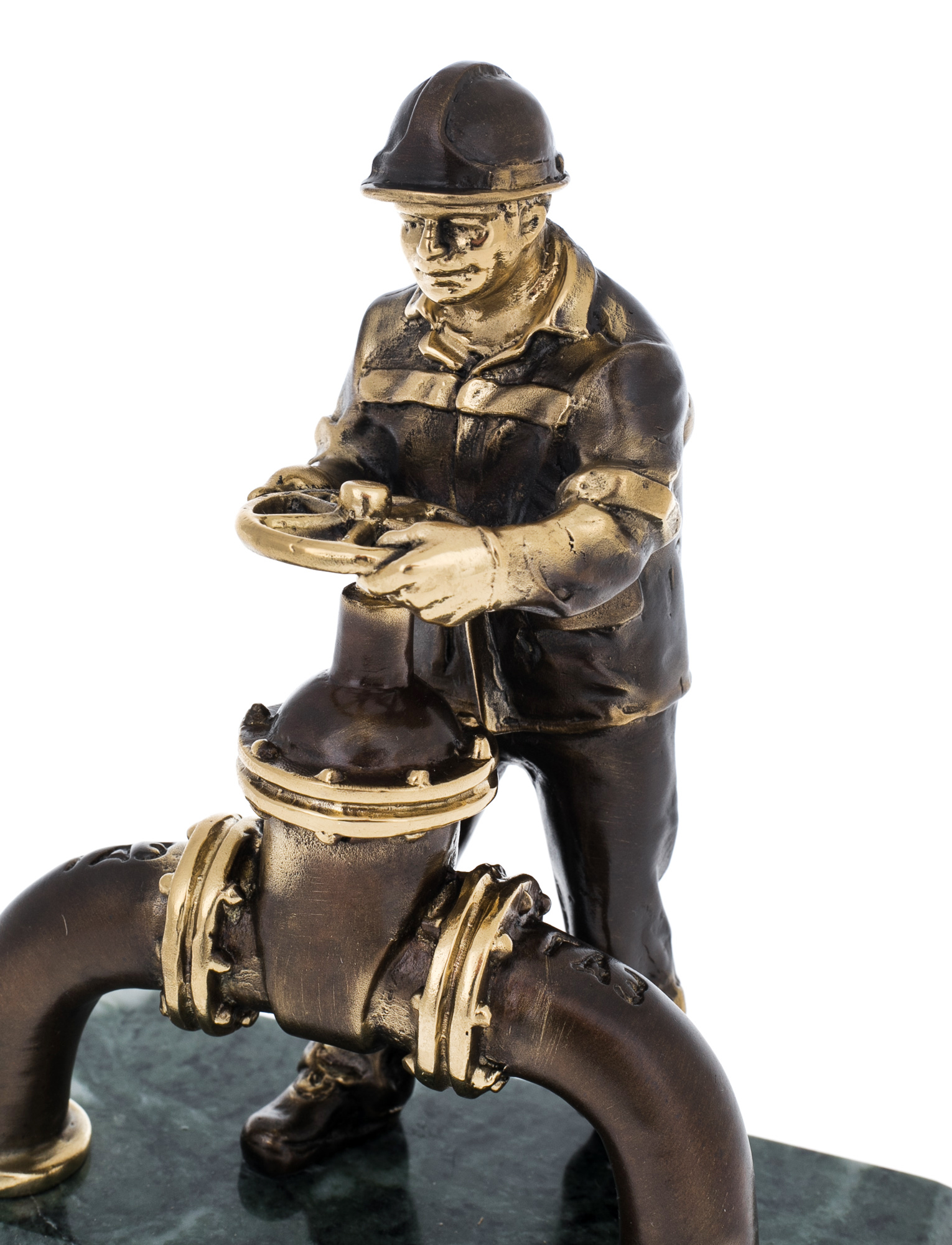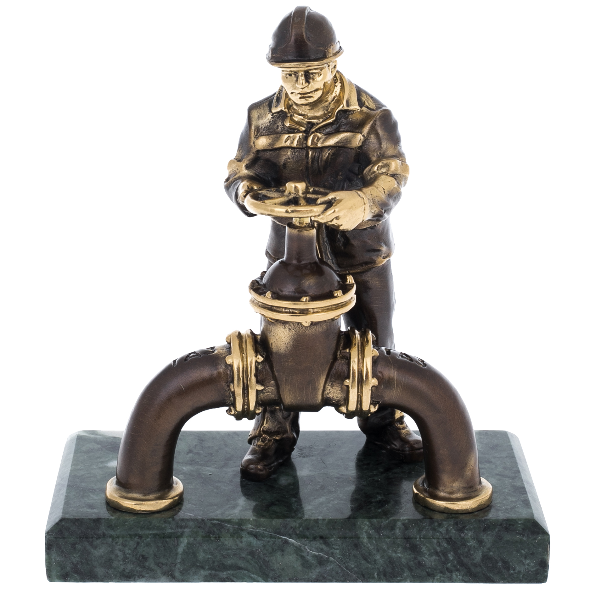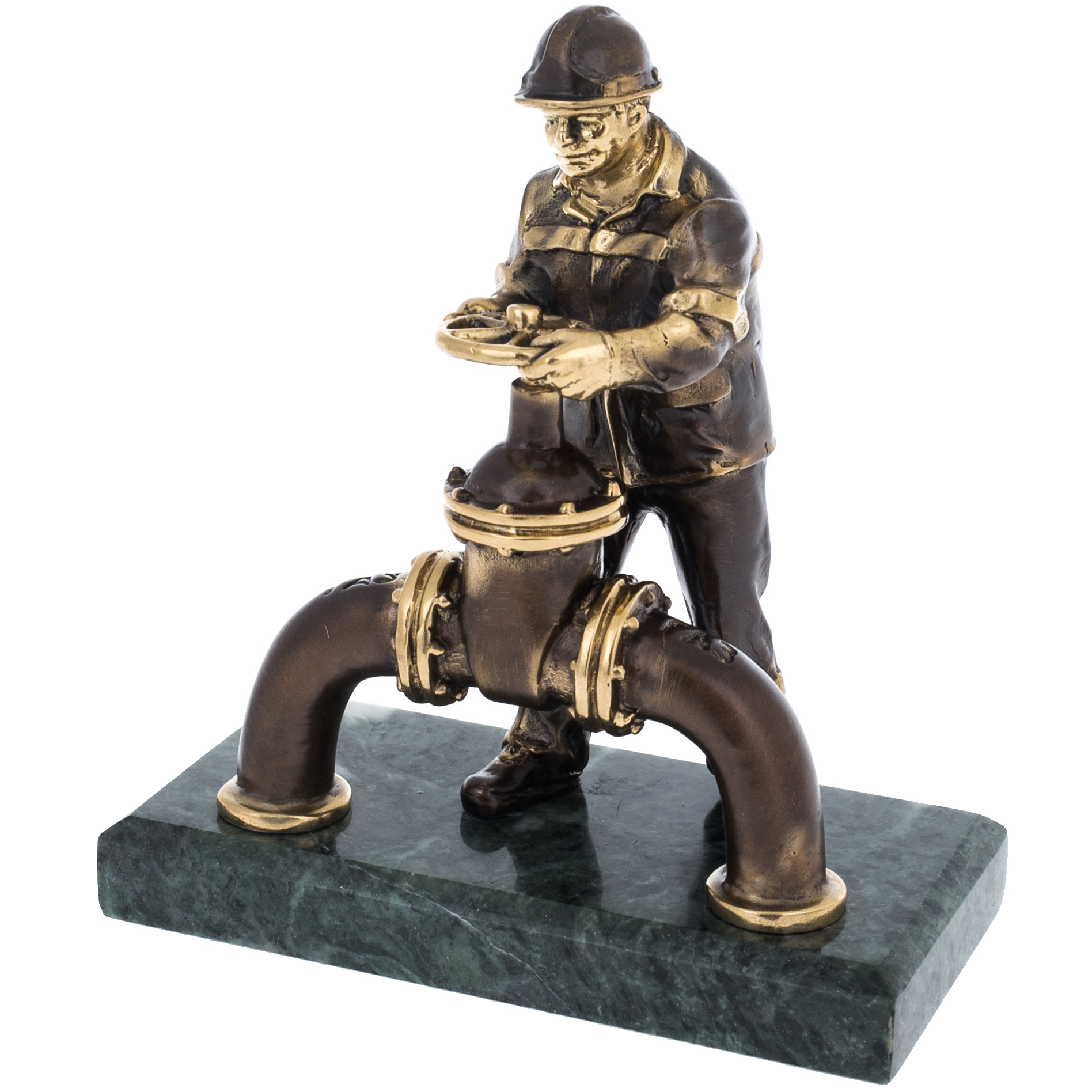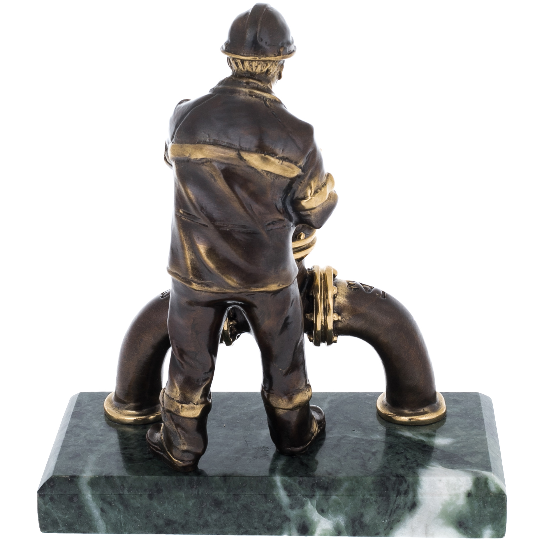 Статуэтка из бронзы "Газовщик с трубой" змеевик