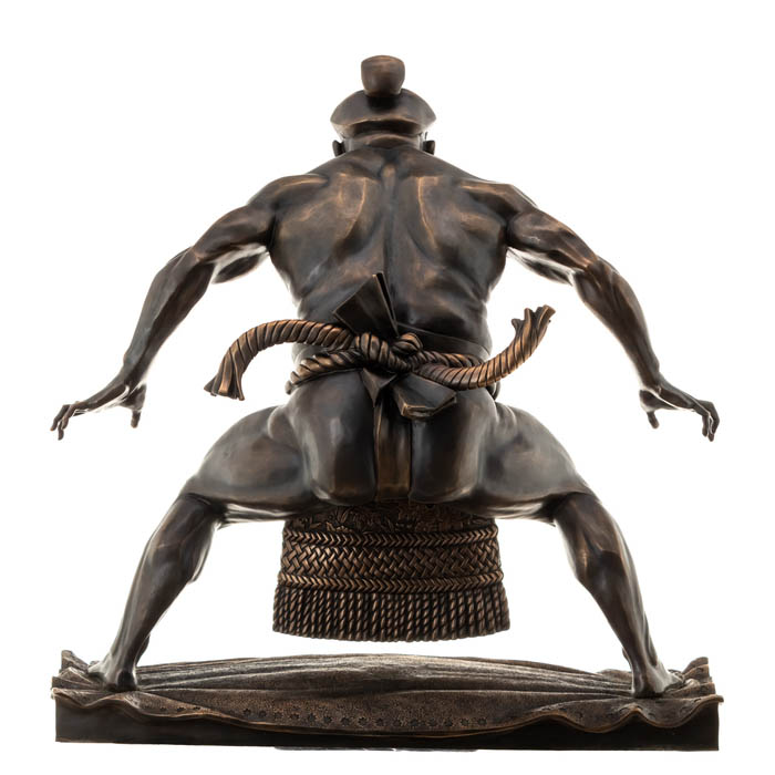 Поза, застывшая в моменте предельного напряжения, напоминает о древних воинах, выходивших на арену, чтобы сразиться за свою честь и право быть первым. Широко расставленные ноги, словно корни могучего дерева, олицетворяют связь с землей, с той самой материей, из которой мы все произошли. Плотная верёвка, опоясывающая мощную талию, кажется, сдерживает не только силу бойца, но и бушующую внутри него энергию, готовую вырваться наружу в любое мгновение.