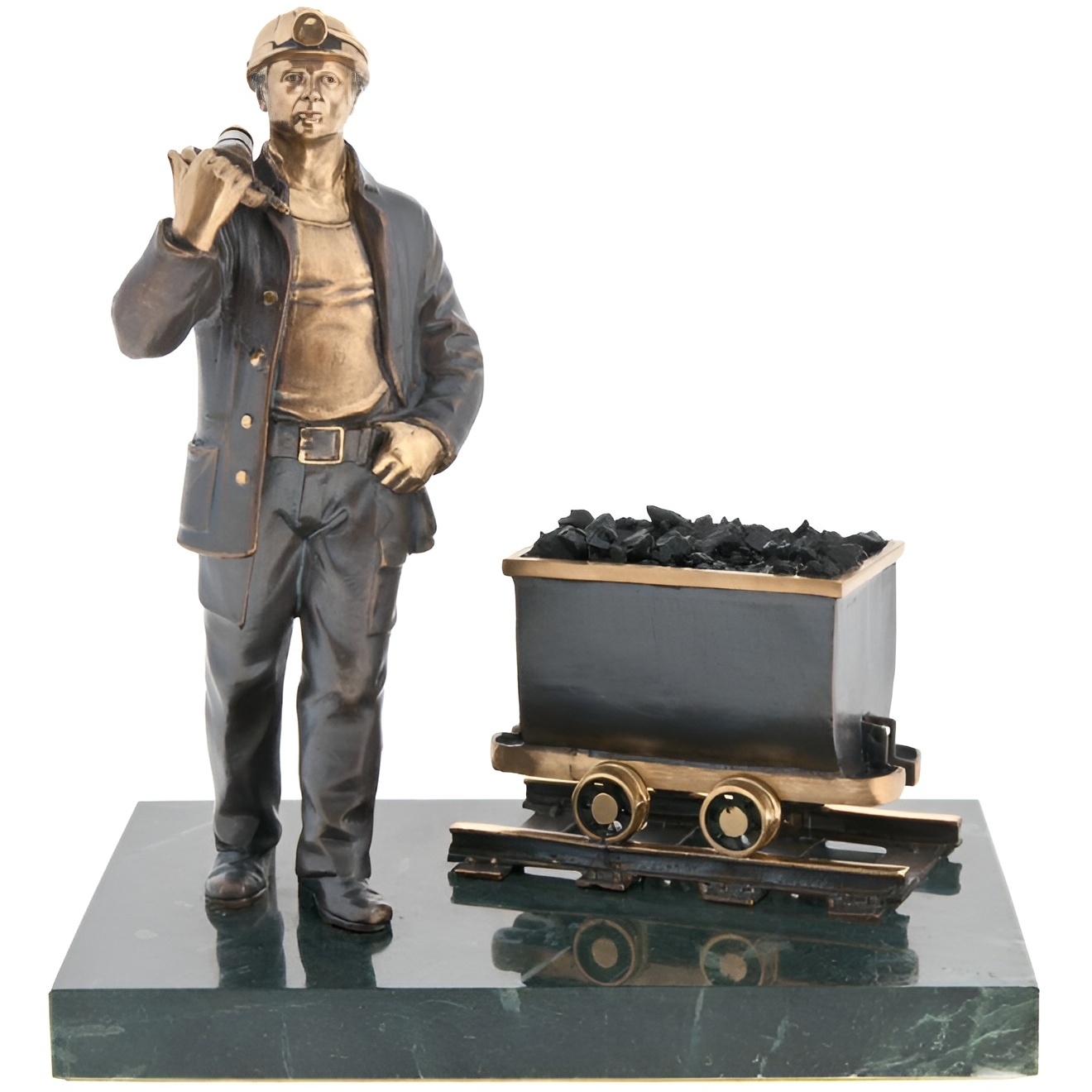 Статуэтка бронзовая "Шахтёр с вагонеткой"