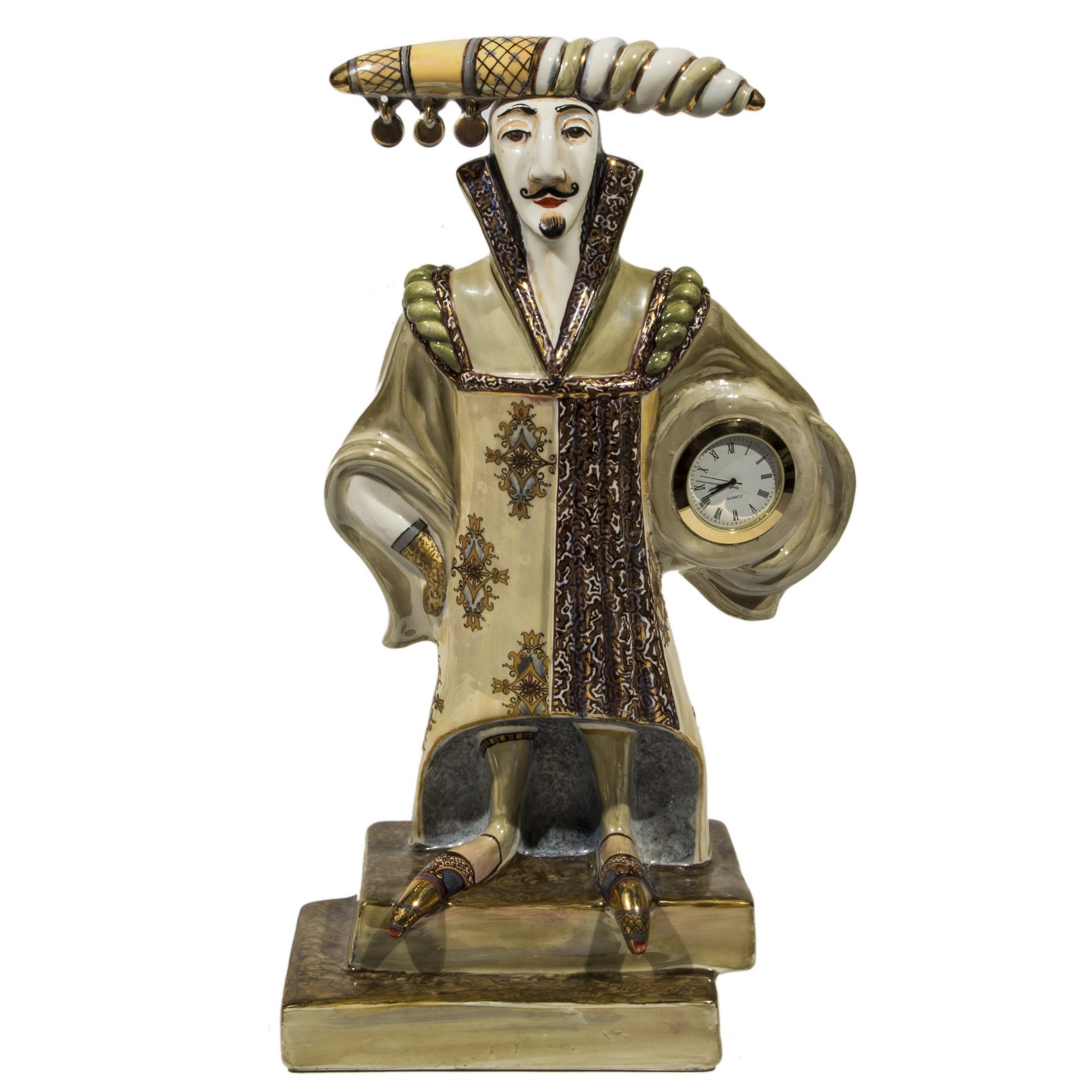 Скульптура из фарфора "Труффальдино" с часами