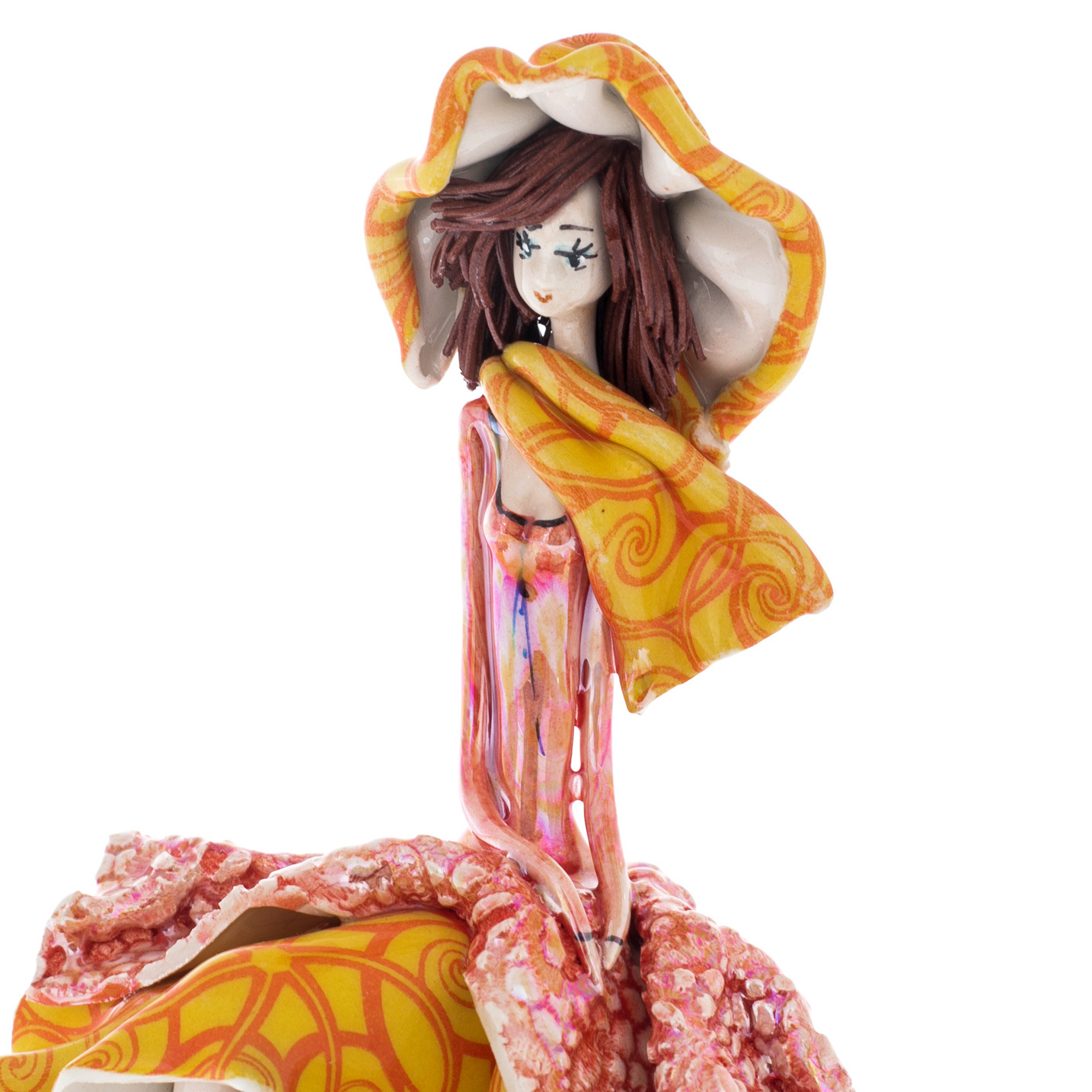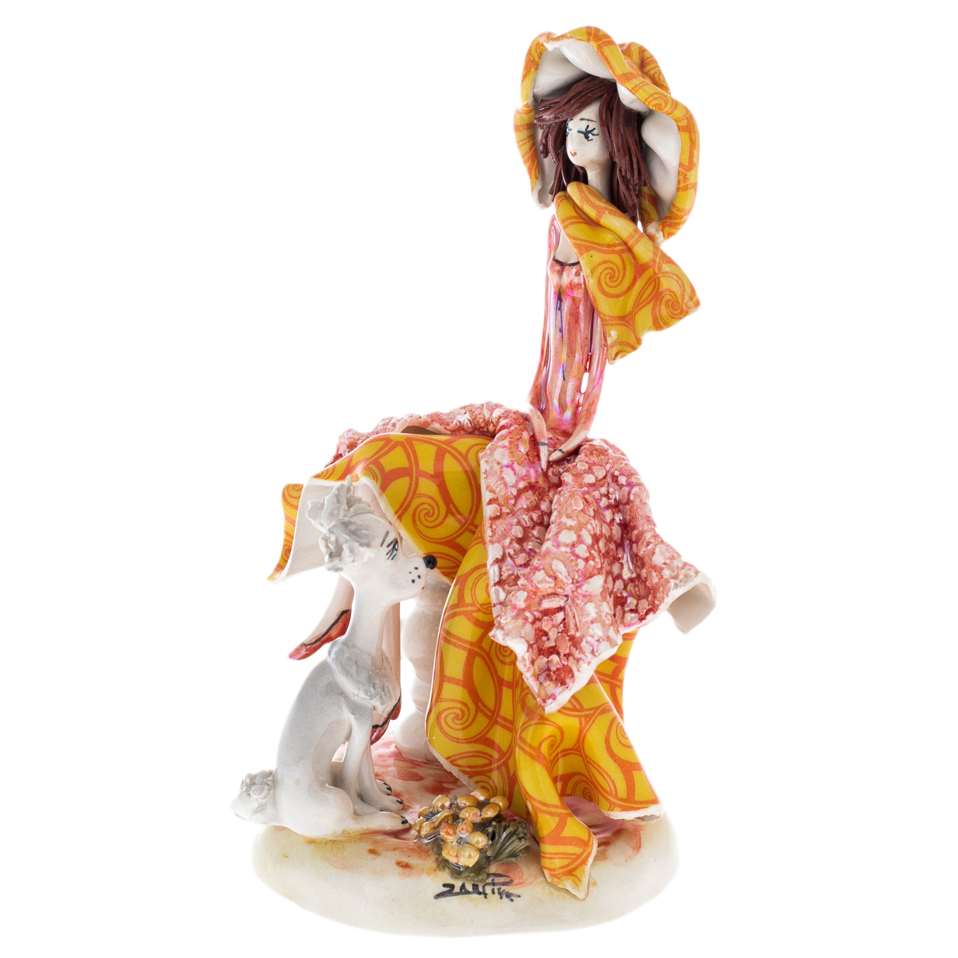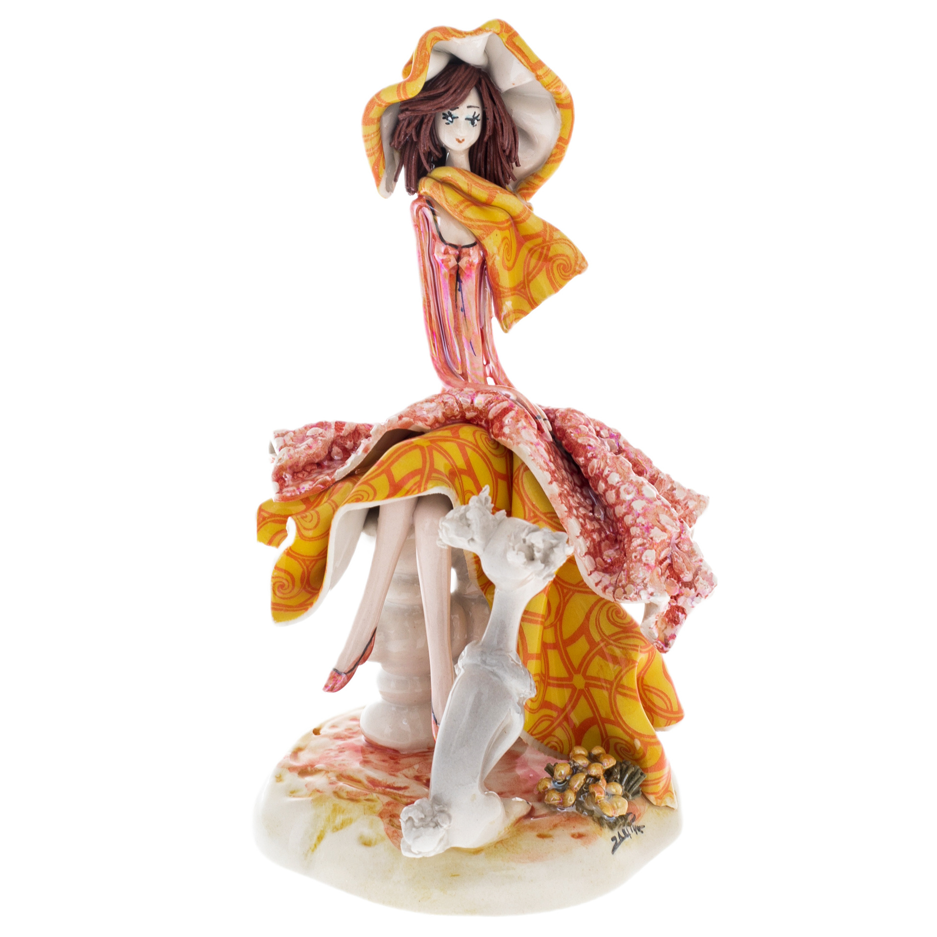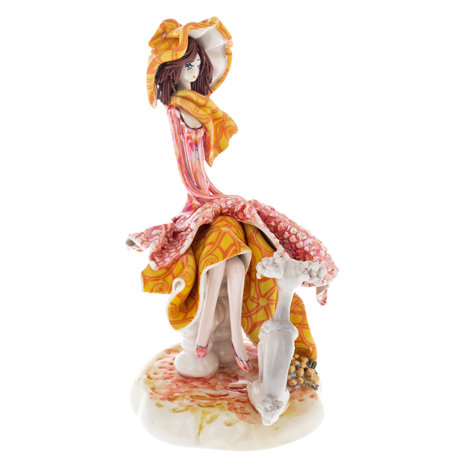 Статуэтка из фарфора "Дама с собачкой" оранжевая