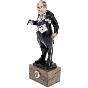 Статуэтка Уинстона Черчилля в полный рост - необычный подарок для выдающейся личности. Яркий политический деятель, искусный оратор, талантливый писатель и даже художник. Его помнят и ценят до сих пор. Колоритный мужчина с неизменной сигарой во рту и тросточкой в руке - такой образ известен всему миру. Подарите эту небольшую скульптуру человеку, знающему историю, стремящемуся к своему личному росту. Он разместит ее в своем кабинете или гостиной, вдохновляясь достижениями этого политика. Деловой человек, чиновник, лидер компании, ученый-историк или политик - вот кто будет рад такому подарку. Фигура сделана из фарфора, который не потускнеет с годами, не потеряет блеска.