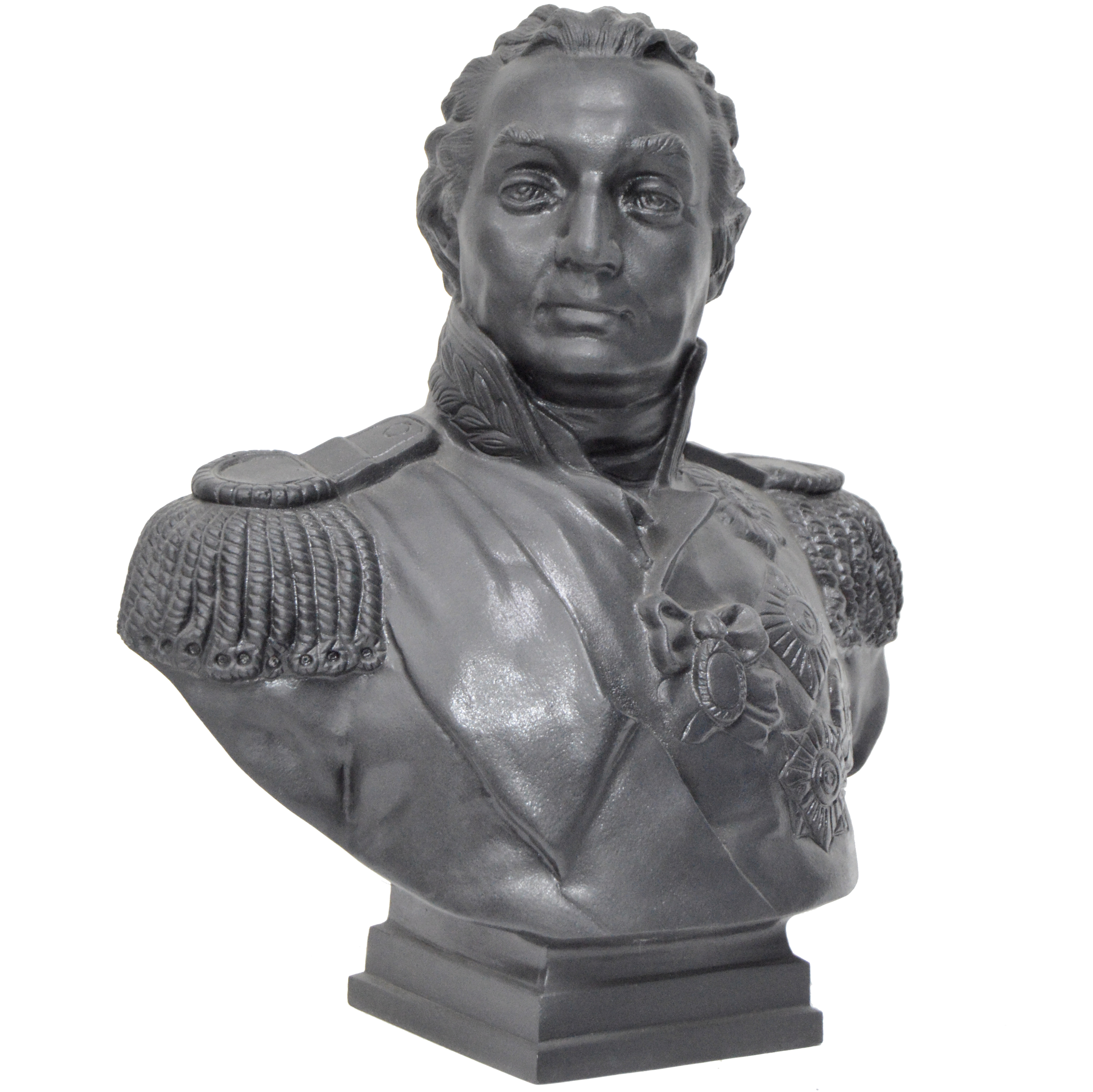 Эта потрясающая статуэтка олицетворяет силу, мудрость и харизму русского генерала Михаила Иларионовича Кутузова. Легендарный полководец, который вывел Российскую армию к победе во время войн против Наполеона. Реалистичный и детализированный бюст передает неподвижность и решительность на лице генерала, его глубокие черты и взгляд, который пронзает сердца.