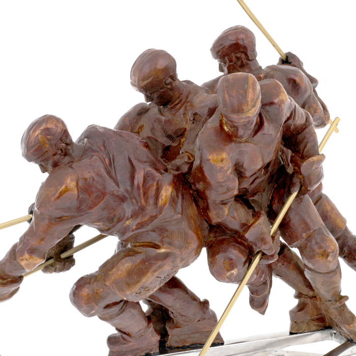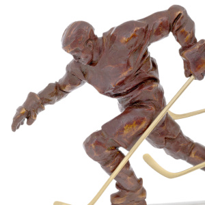 Скульптура из бронзы «Александр Овечкин №8» — это динамичный гимн скорости, силе и непоколебимой воле к победе. В каждой линии фигуры ощущается энергия движения, мгновение атаки, когда спортсмен сосредоточен до предела, а лед под коньками словно тает под натиском его стремительности. Автор придал композиции особую живость: бронзовая поверхность будто хранит дыхание игры, передавая мощь мускулатуры, напряжение рук и точность движения, замершего на пике действия.