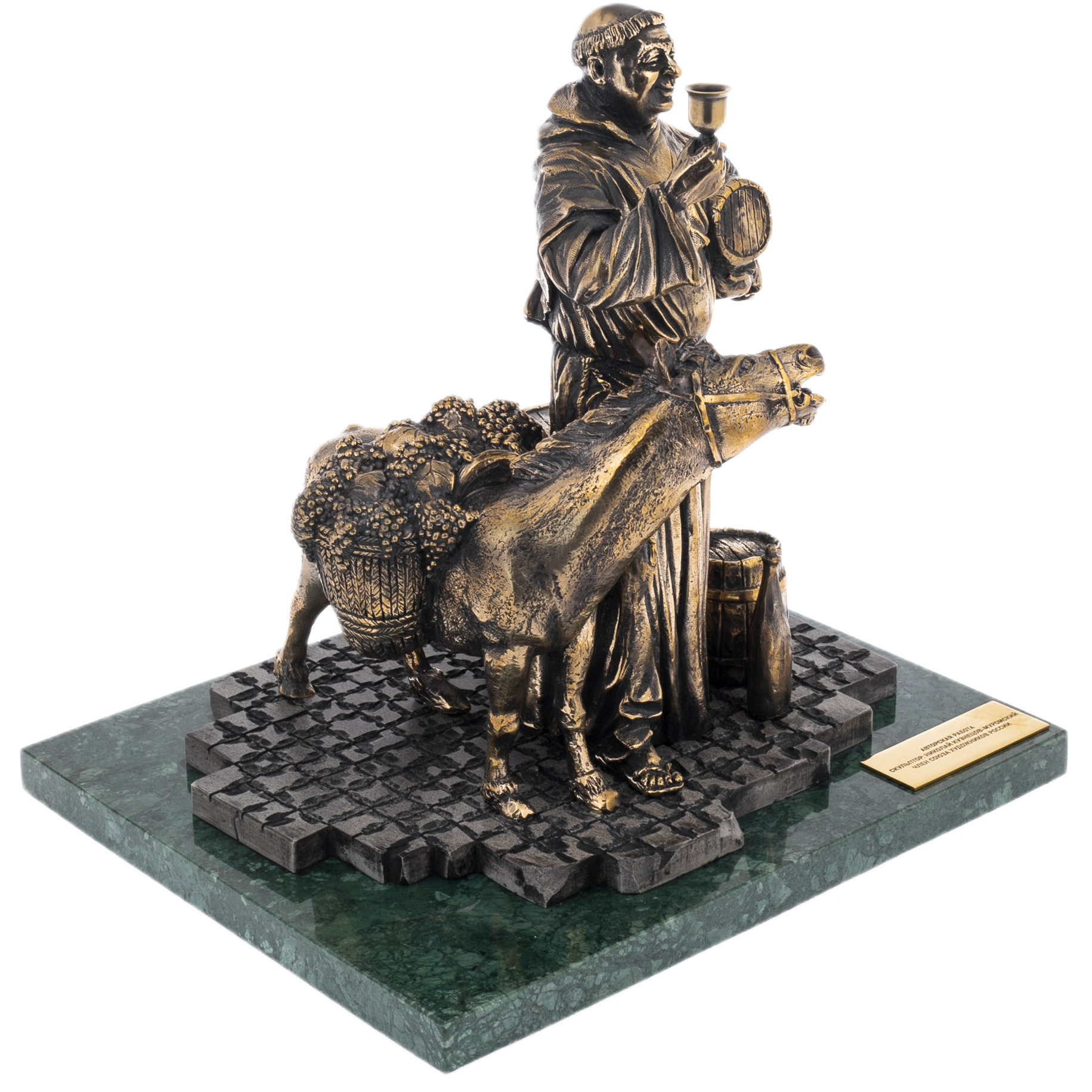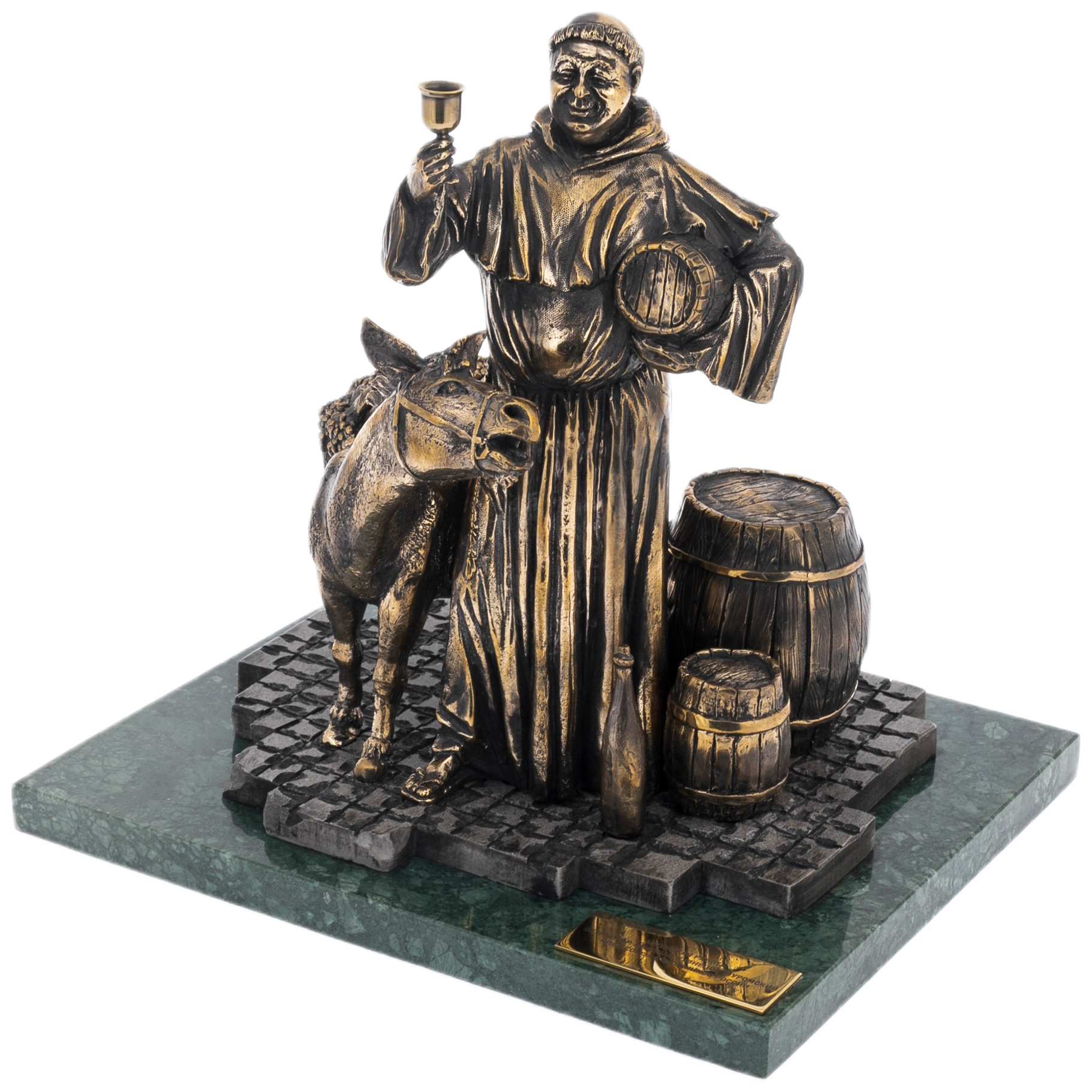 Фигура монаха, запечатлённая в бронзе, рассказывает о тихом, но насыщенном смыслами мире средневековых монастырей, где бокал вина становится символом уюта, гостеприимства и искренней радости. Его поза, полный достоинства взгляд и торжественно поднятый бокал передают одновременно благословение и приглашение к жизни, наполненной простотой и мудростью.