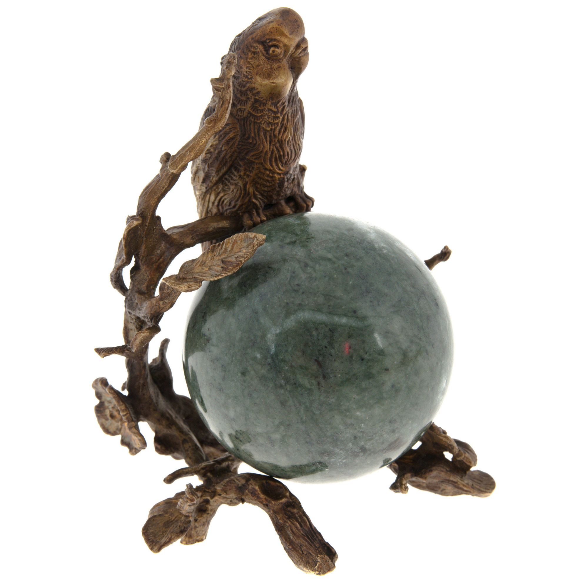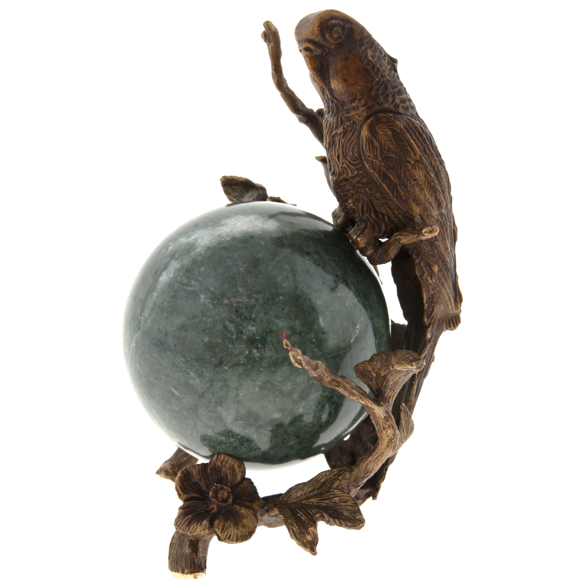 Скульптурная композиция из бронзы "Попугай на шаре"