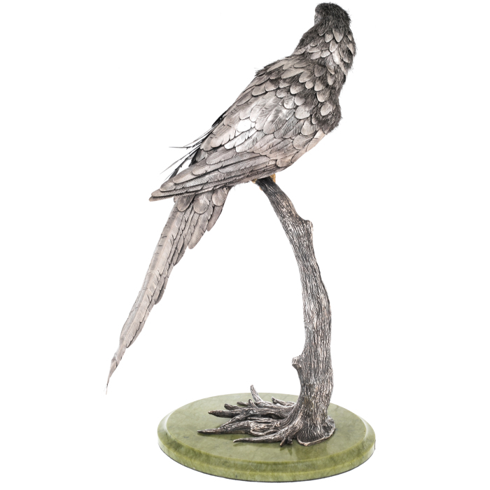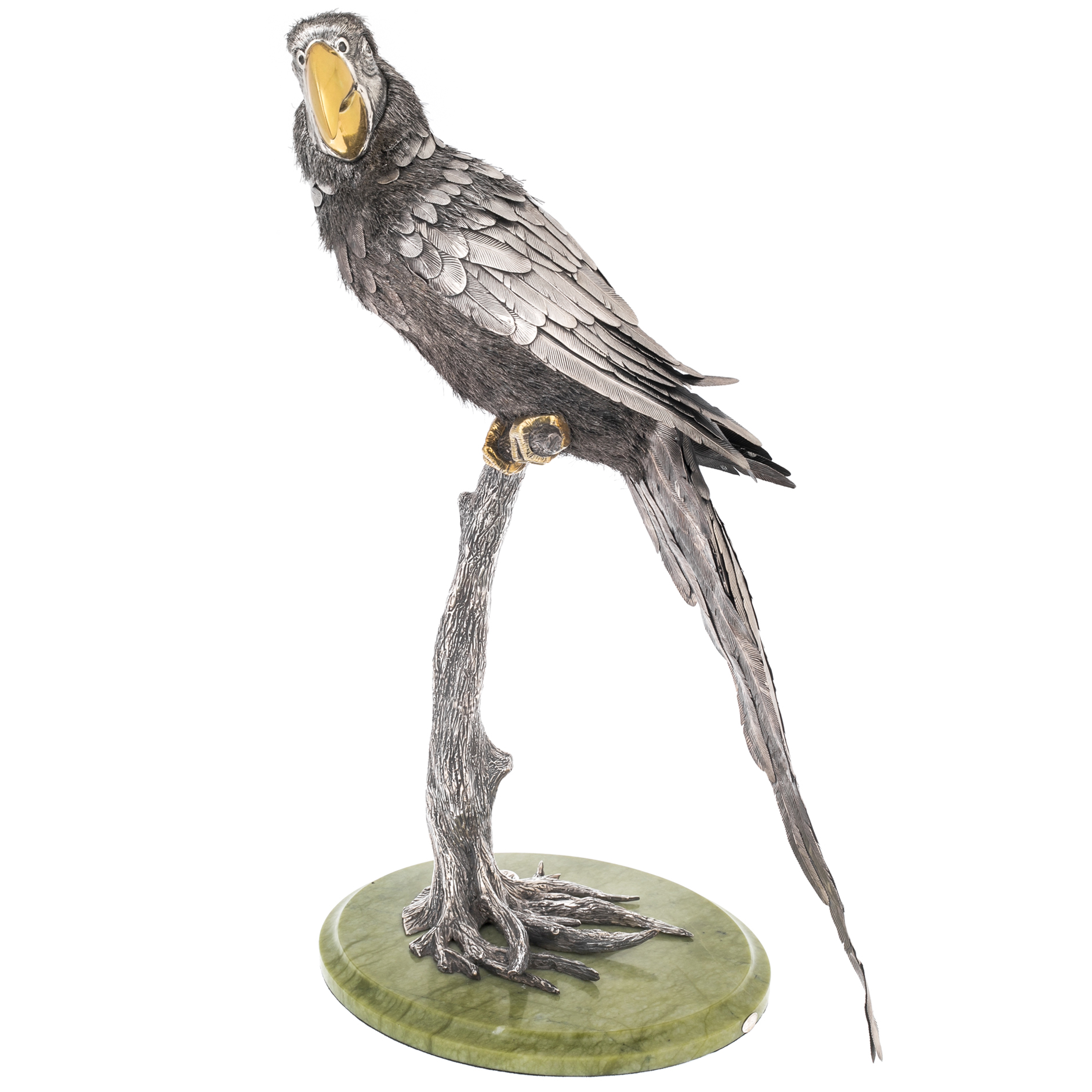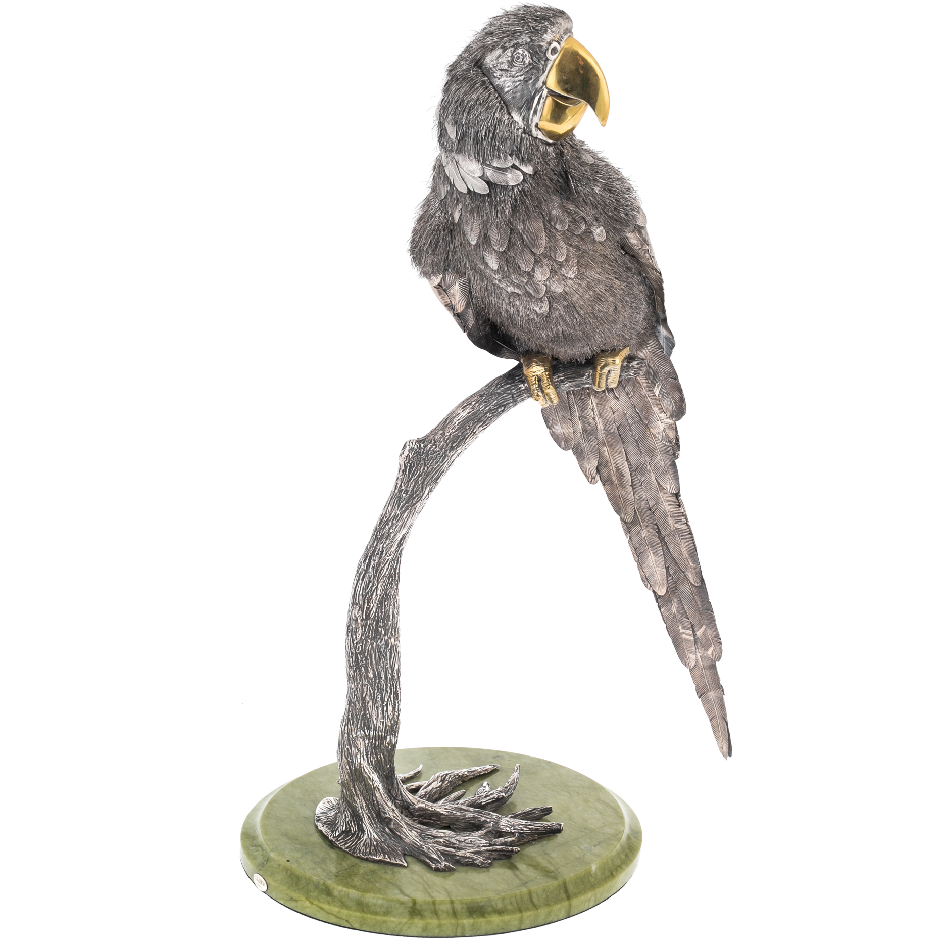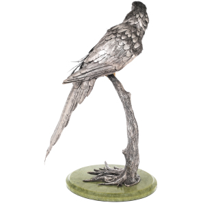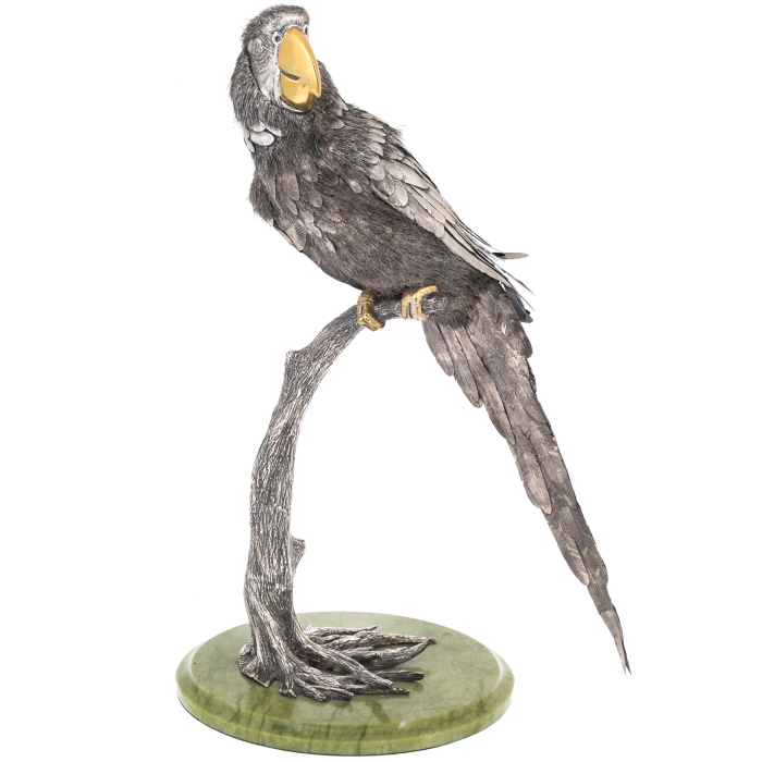 Скульптура из серебра "Попугай" на подставке из мрамора