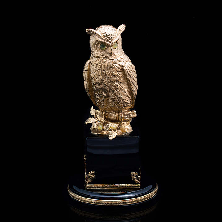 Посеребренная скульптура "Мудрый филин" с позолотой
