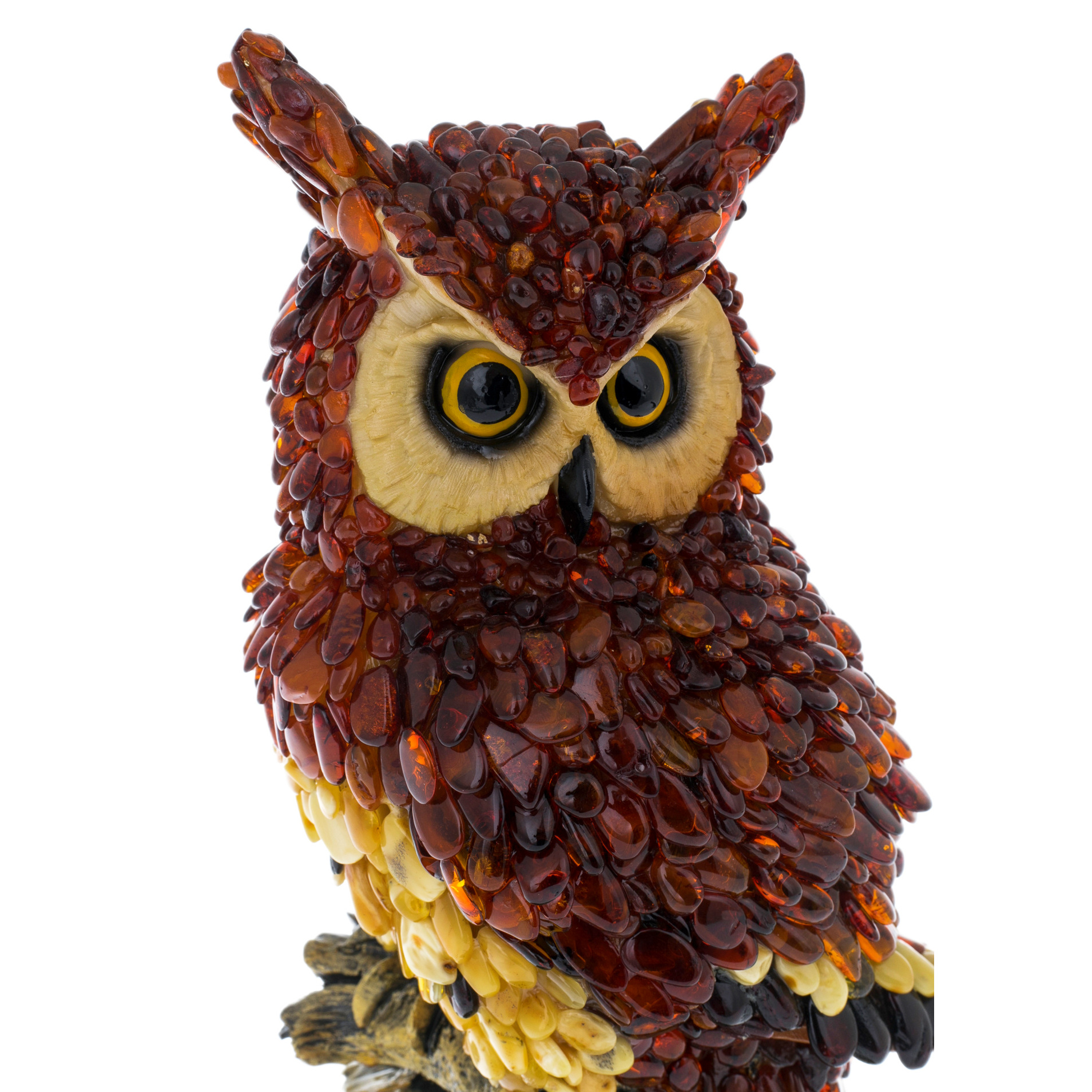 Перед вами скульптура из янтаря, изображающая филина — воплощение мудрости и власти. Каждый элемент этого произведения искусства восхищает своей тщательной проработкой и символизмом. Взгляд филина — гипнотизирующий и пронзительный — словно проникает в самую душу, подчеркивая силу, которой этот образ наделен. Янтарь, из которого выполнена скульптура, придает ей особое очарование: его теплые оттенки варьируются от золотого до глубокого медового, как бы говоря о мудрости, накопленной веками.