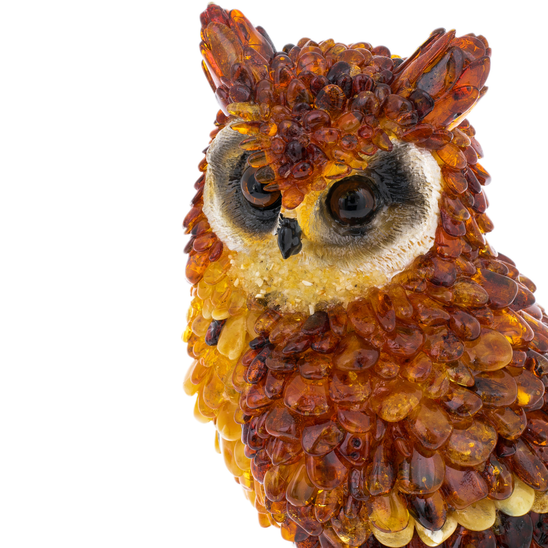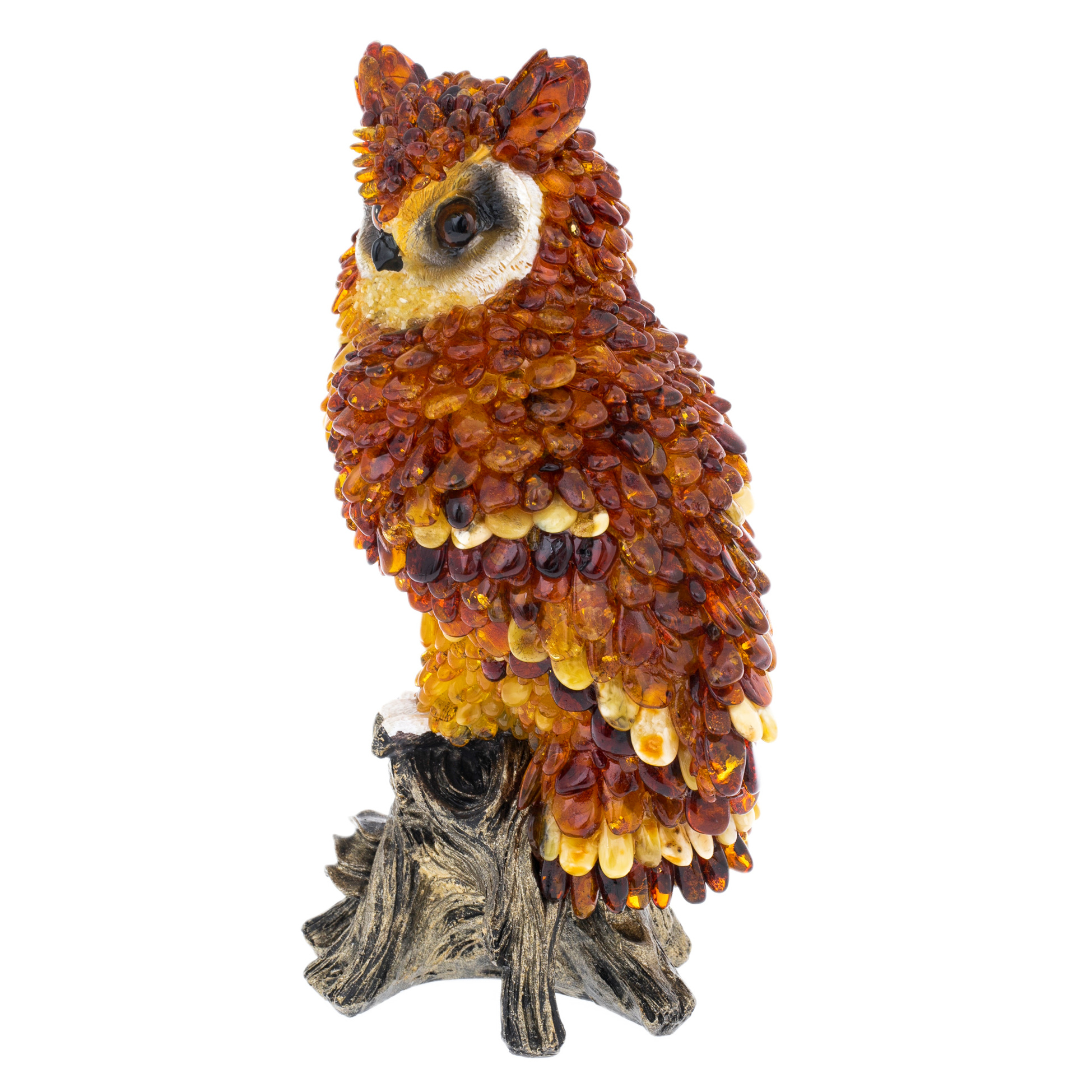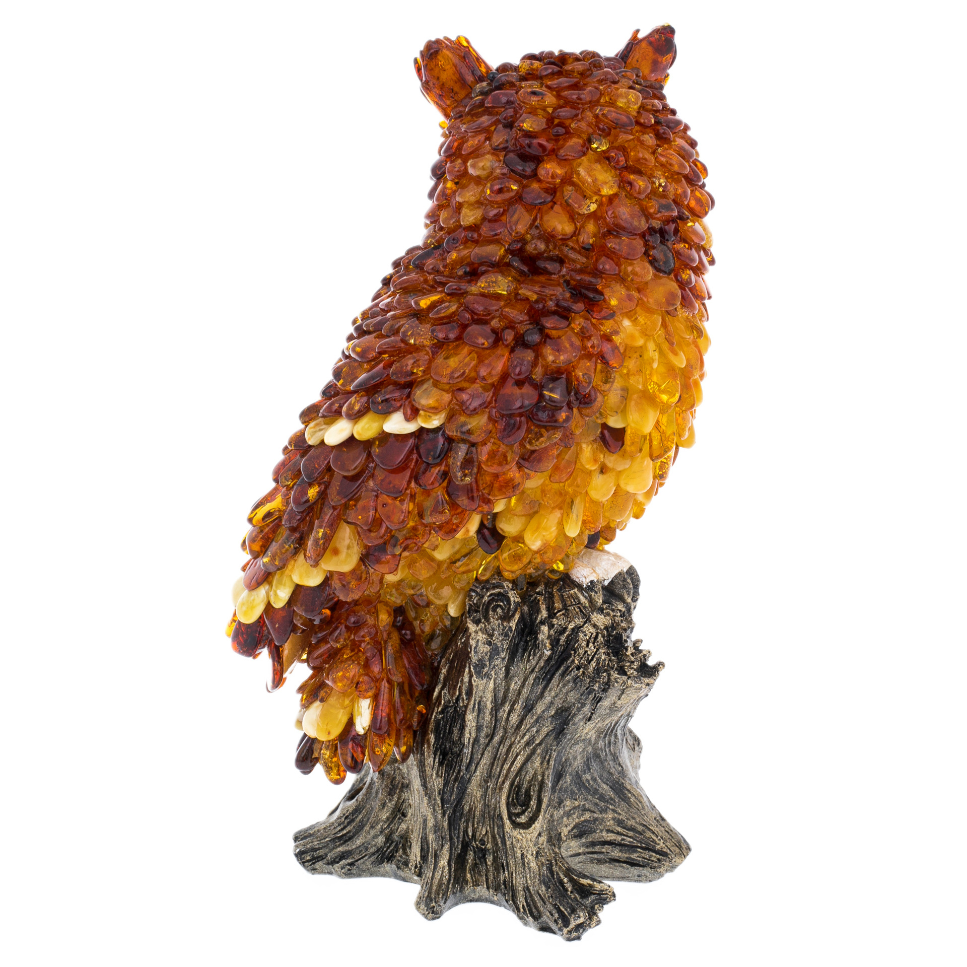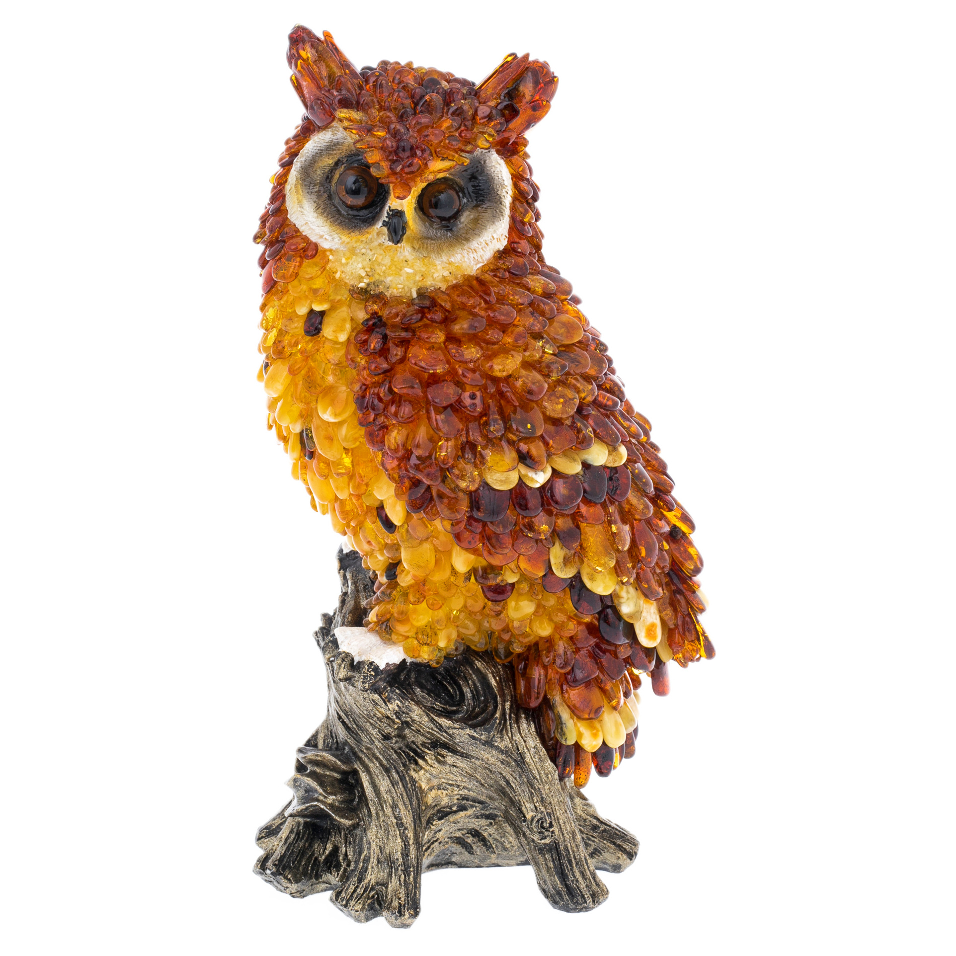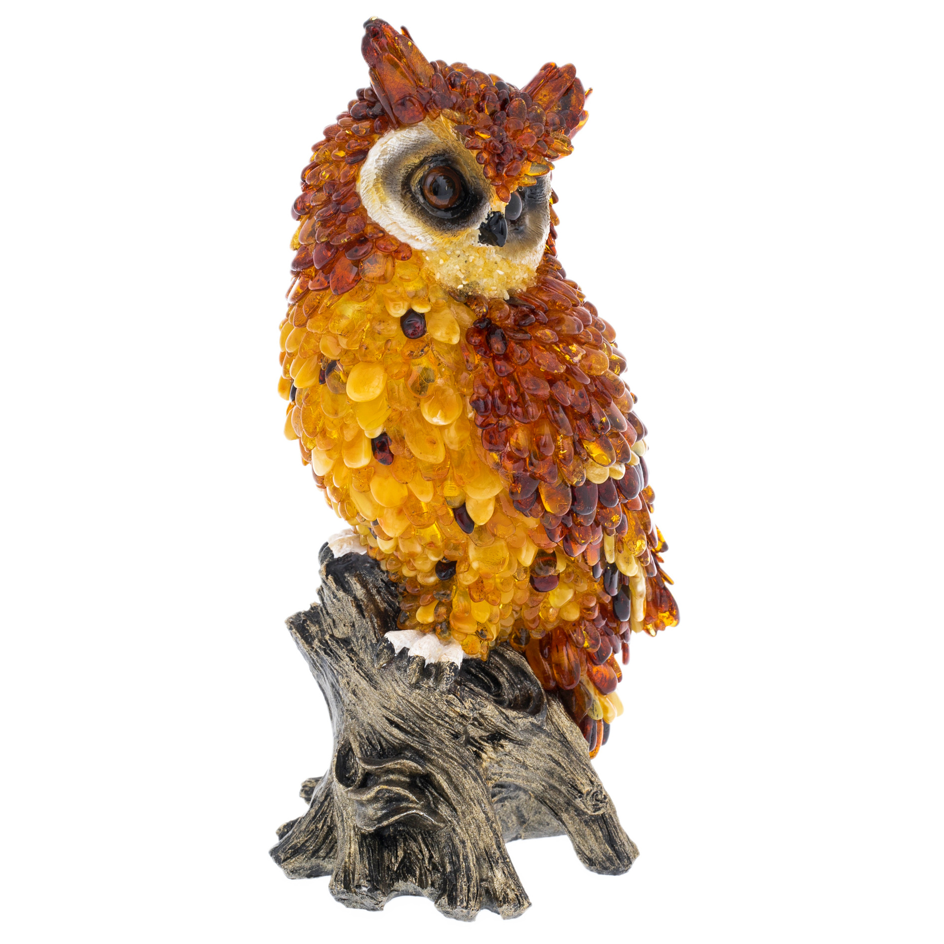 Статуэтка совы, сидящей на ветке, представляет собой уникальное сочетание природной красоты и мастерства, являясь настоящим произведением искусства. Янтарь, используемый для создании этой скульптуры, обладает тёплыми оттенками, переливающимися на свету, придавая изделию особую глубину и благородство. Сова, выглядит настолько реалистично, что кажется живой. Каждый ее элемент, будь то перья или когти, выполнен с безупречным вниманием к деталям, демонстрируя высочайший уровень мастерства.