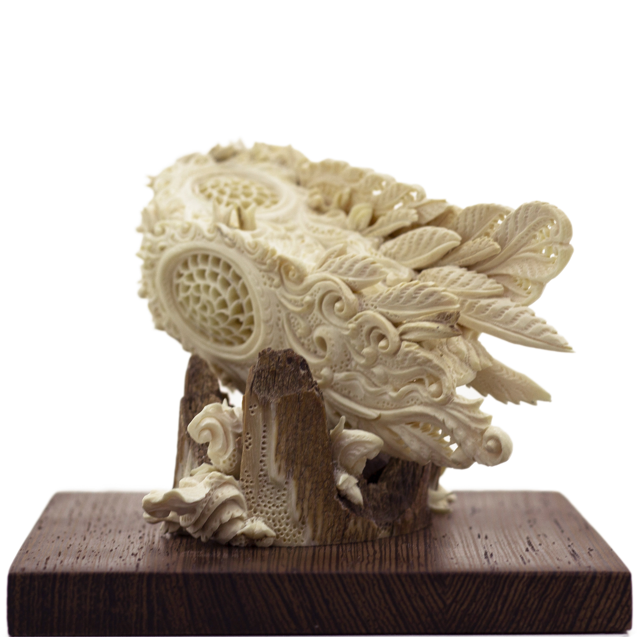 Арт-объект займёт заслуженное место в коллекции предметов косторезного искусства, будет вдохновлять владельца. Скульптура выполнена из бивня мамонта, редкого поделочного материала, который добывается в северных регионах. Отличный подарок боссу или партнеру по бизнесу. Сувенир из редкого и дорогостоящего материала (кости животного, природного камня или редкой породы древесины) всегда будет цениться в подарок.