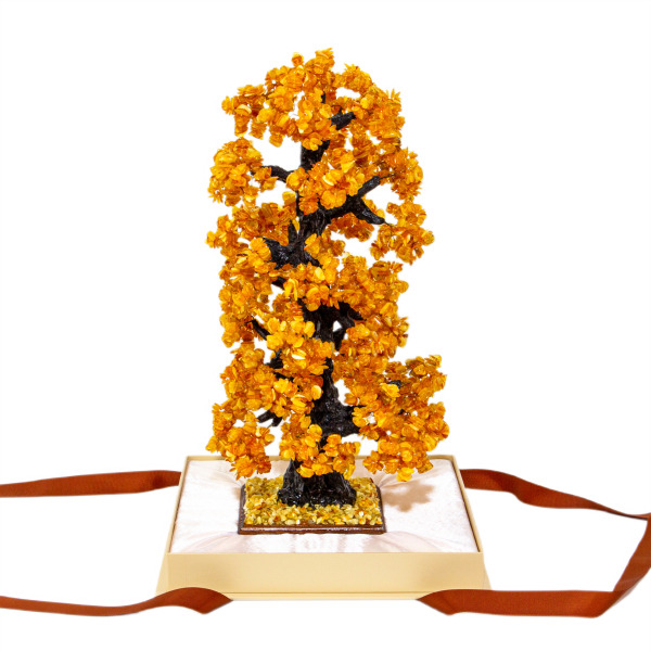 Янтарное дерево – символ богатства и счастья. По фэн-шую этот сувенир считается семейным талисманом, притягивающим в дом удачу и позитивную энергию, поэтому его можно дарить на любое торжество. Дерево из янтаря защищает обитателей дома от опасностей, болезней и несчастий, дарит силу, хорошее самочувствие и бодрость духа. Сияющие янтарные листочки на дереве счастья могут быть нежно-медовыми, золотистыми, зеленоватыми, молочно-белыми и красными. Они выглядят эффектно, стильно и притягательно, наполняя интерьер солнечным светом и теплом души.
