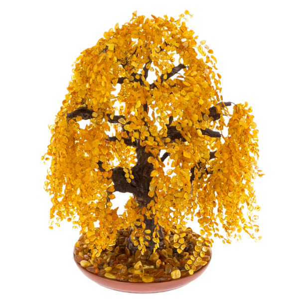 Сувенир из янтаря "Денежное дерево"Сувенир из янтаря "Денежное дерево"Янтарное дерево – символ богатства и счастья. По фэн-шую этот сувенир считается семейным талисманом, притягивающим в дом удачу и позитивную энергию, поэтому его можно дарить на любое торжество. Дерево из янтаря защищает обитателей дома от опасностей, болезней и несчастий, дарит силу, хорошее самочувствие и бодрость духа. Сияющие янтарные листочки на дереве счастья могут быть нежно-медовыми, золотистыми, зеленоватыми, молочно-белыми и красными. Они выглядят эффектно, стильно и притягательно, наполняя интерьер солнечным светом и теплом души. Не случайно великие цари и императоры окружали себя янтарем - корона египетского фараона Тутанхамона была украшена янтарными камнями, а во дворце Петра I была целая комната из янтаря. Этот яркий, теплый и жизнерадостный камень поднимает настроение и заряжает жизненной энергией даже тех, кто потерял вкус к жизни.
