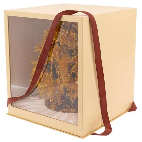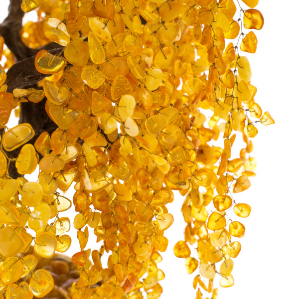Особая техника плетения ветвей с креплением камней вручную требует от мастера не только технического совершенства, но и художественного дара. Сотни маленьких янтарных фрагментов бережно отобраны по цвету, прозрачности и форме, каждая ветвь смоделирована так, чтобы передать естественную пластику ивы. Блестящая и по-своему медитативная композиция создана для людей, умеющих ценить ручной труд, аутентичность природных материалов и редкое спокойствие, исходящее от предмета, исполненного с настоящей любовью к красоте.