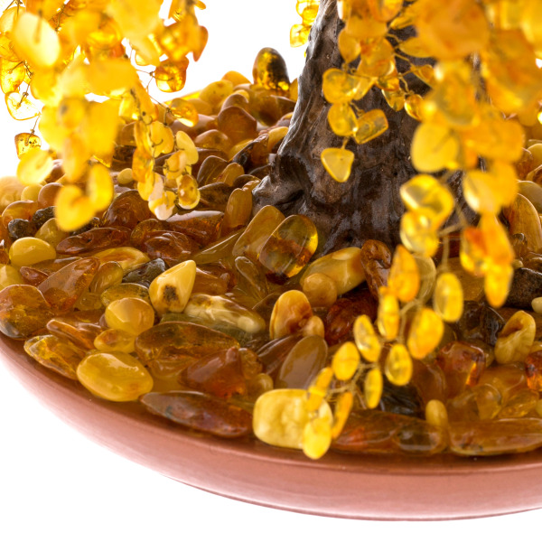 Сувенир из янтаря "Денежное дерево" на 45 ветокСувенир из янтаря "Денежное дерево" на 45 ветокЯнтарное дерево – символ богатства и счастья. По фэн-шую этот сувенир считается семейным талисманом, притягивающим в дом удачу и позитивную энергию, поэтому его можно дарить на любое торжество. Дерево из янтаря защищает обитателей дома от опасностей, болезней и несчастий, дарит силу, хорошее самочувствие и бодрость духа. Сияющие янтарные листочки на дереве счастья могут быть нежно-медовыми, золотистыми, зеленоватыми, молочно-белыми и красными. Они выглядят эффектно, стильно и притягательно, наполняя интерьер солнечным светом и теплом души. Не случайно великие цари и императоры окружали себя янтарем - корона египетского фараона Тутанхамона была украшена янтарными камнями, а во дворце Петра I была целая комната из янтаря. Этот яркий, теплый и жизнерадостный камень поднимает настроение и заряжает жизненной энергией даже тех, кто потерял вкус к жизни.