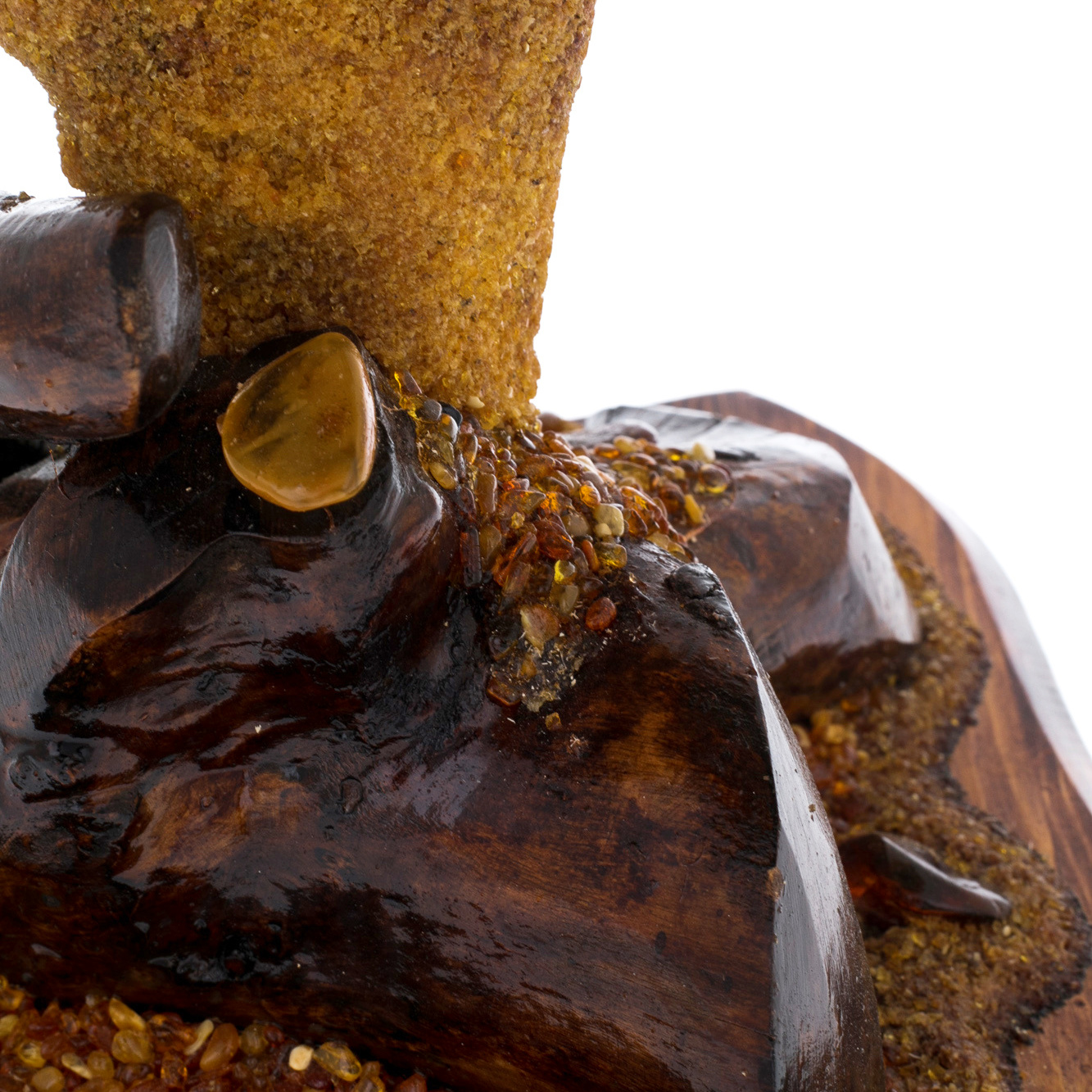Материалы: натуральный янтарь, медь, дерево.
