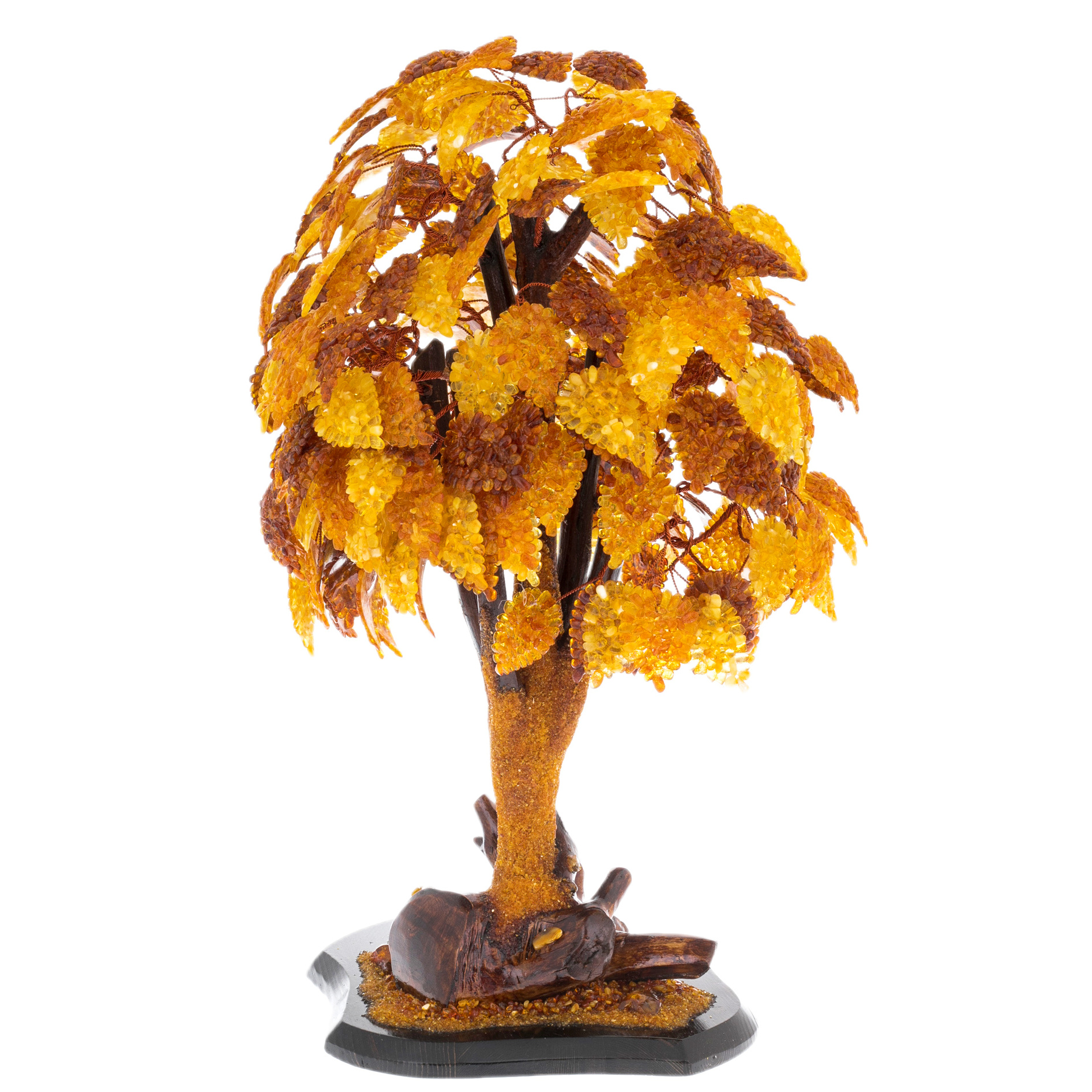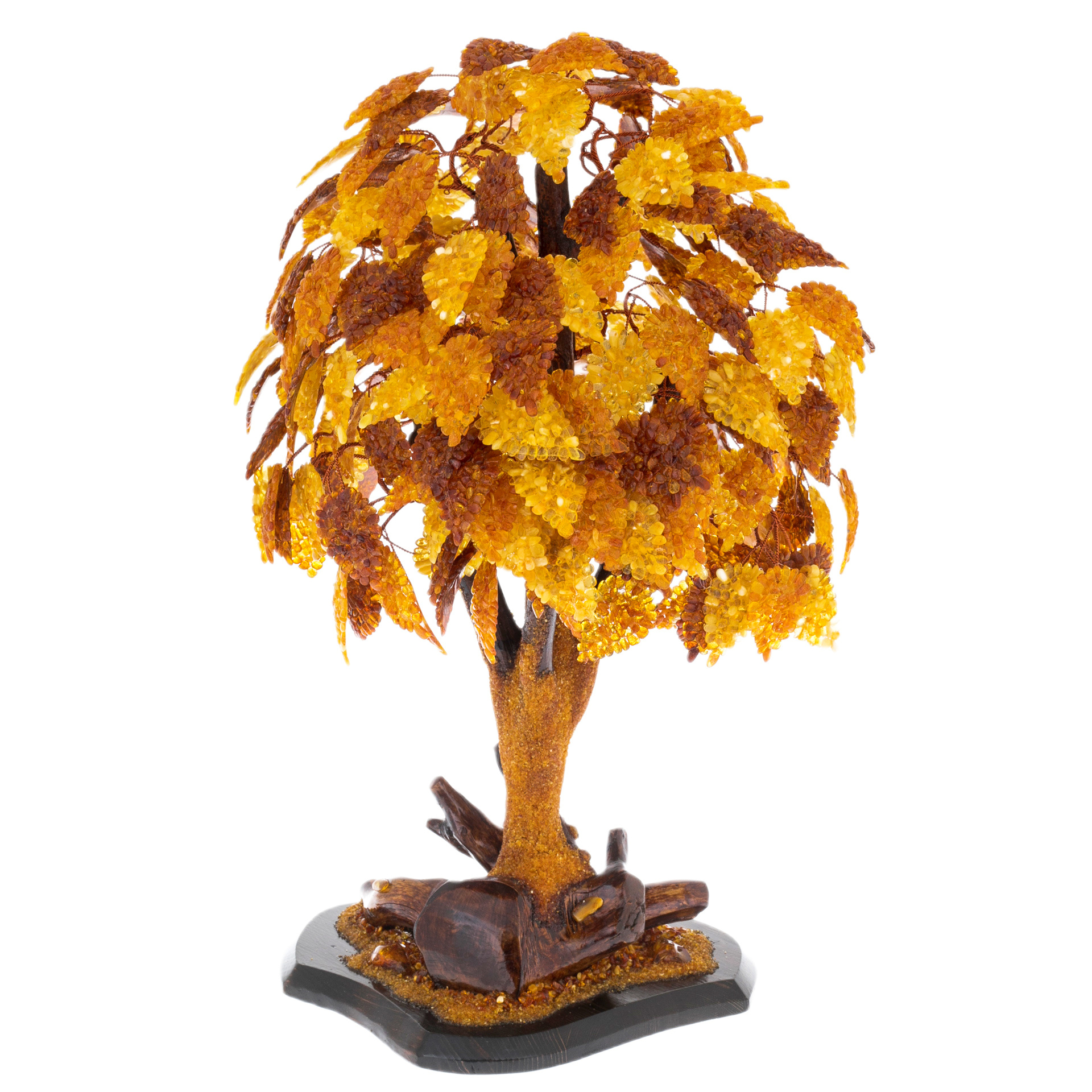 Сувенир из янтаря "Дерево Счастья. Золотые листья"