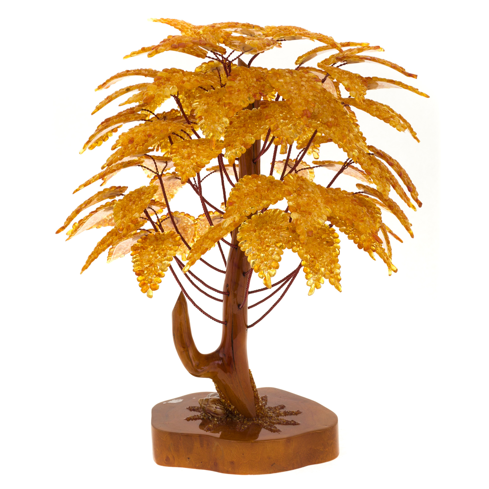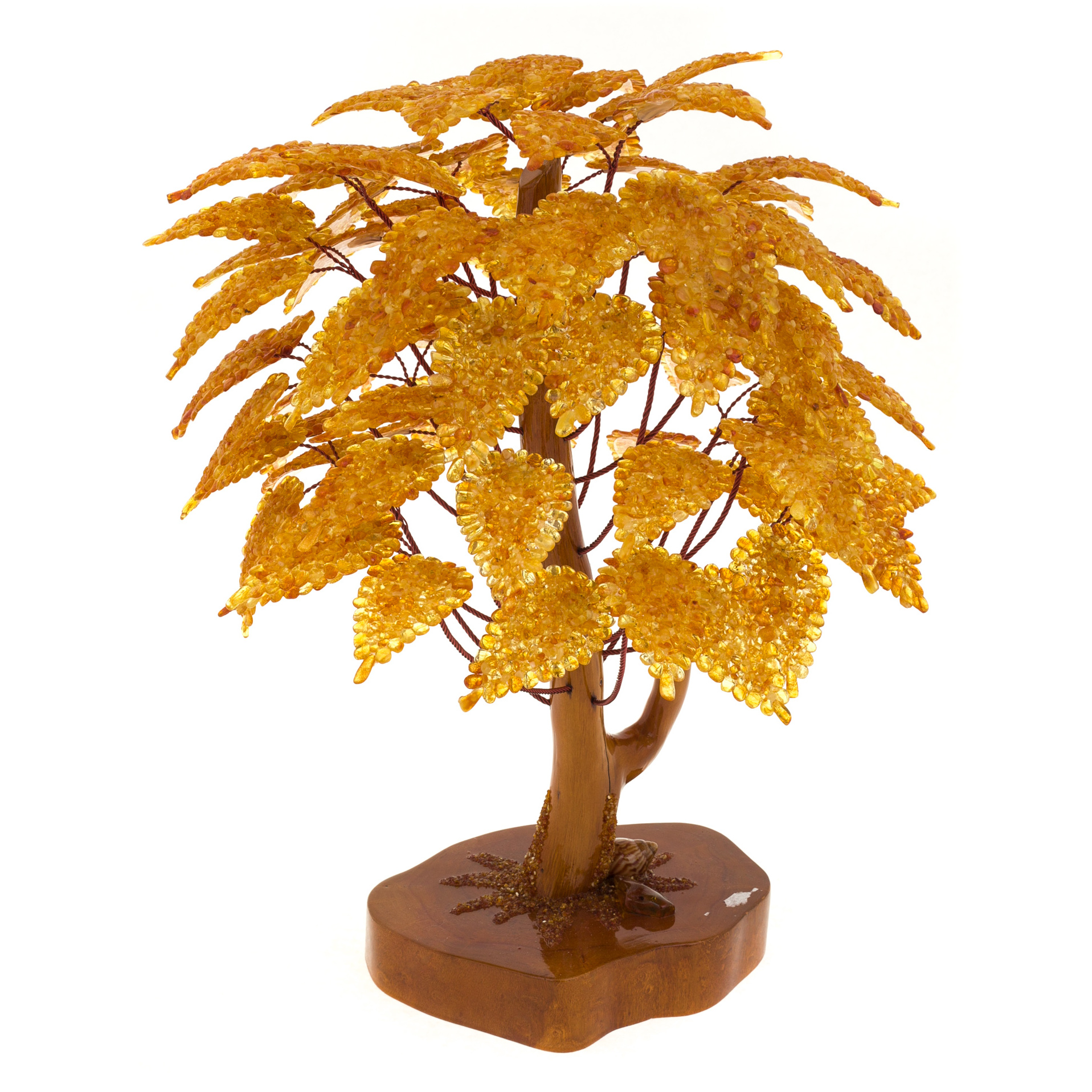 Янтарное дерево – символ богатства и счастья. По фэн-шую этот сувенир считается семейным талисманом, притягивающим в дом удачу и позитивную энергию, поэтому его можно дарить на любое торжество. Дерево из янтаря защищает обитателей дома от опасностей, болезней и несчастий, дарит силу, хорошее самочувствие и бодрость духа. Сияющие янтарные листочки на дереве счастья могут быть нежно-медовыми, золотистыми, зеленоватыми, молочно-белыми и красными. Они выглядят эффектно, стильно и притягательно, наполняя интерьер солнечным светом и теплом души. Не случайно великие цари и императоры окружали себя янтарем - корона египетского фараона Тутанхамона была украшена янтарными камнями, а во дворце Петра I была целая комната из янтаря. Этот яркий, теплый и жизнерадостный камень поднимает настроение и заряжает жизненной энергией даже тех, кто потерял вкус к жизни.