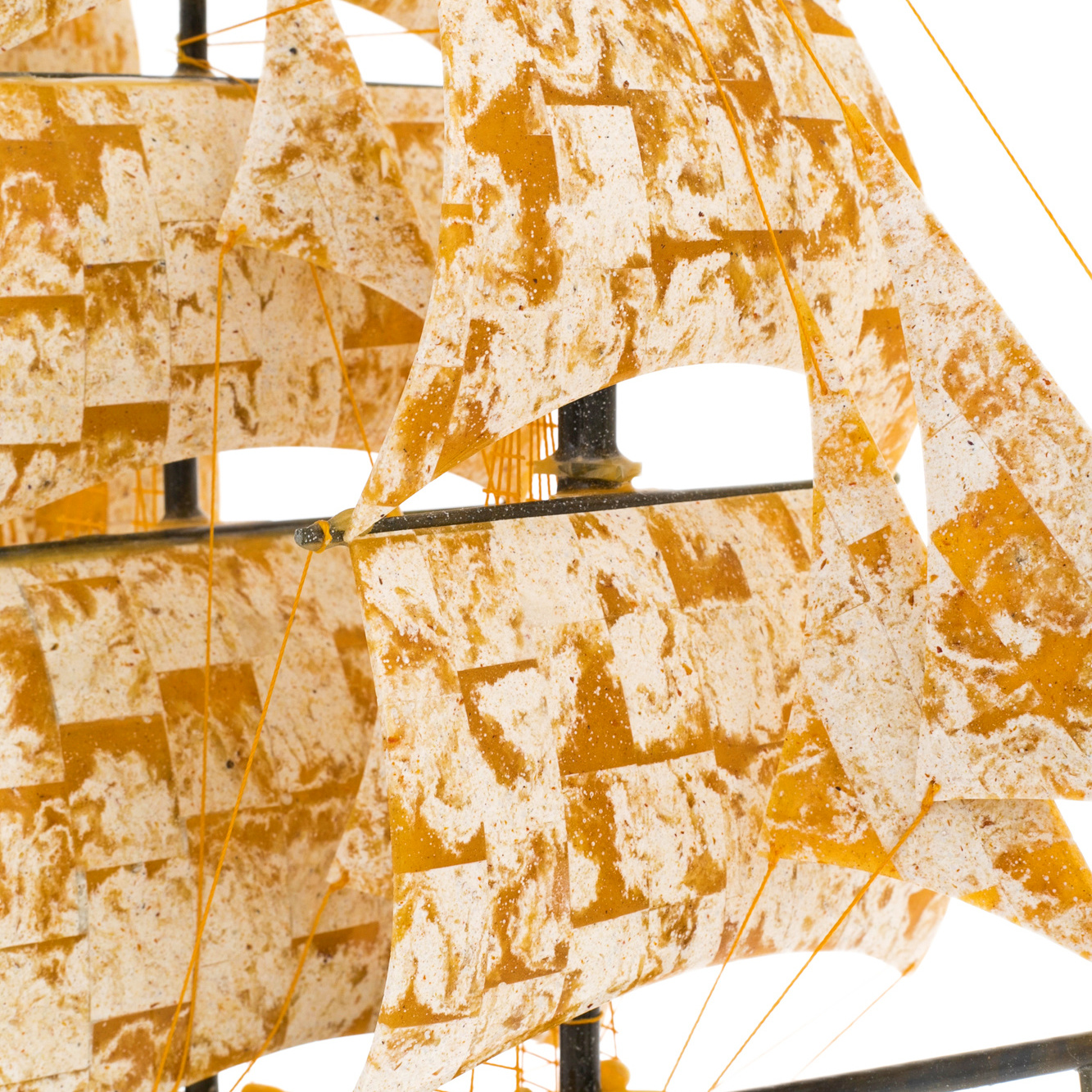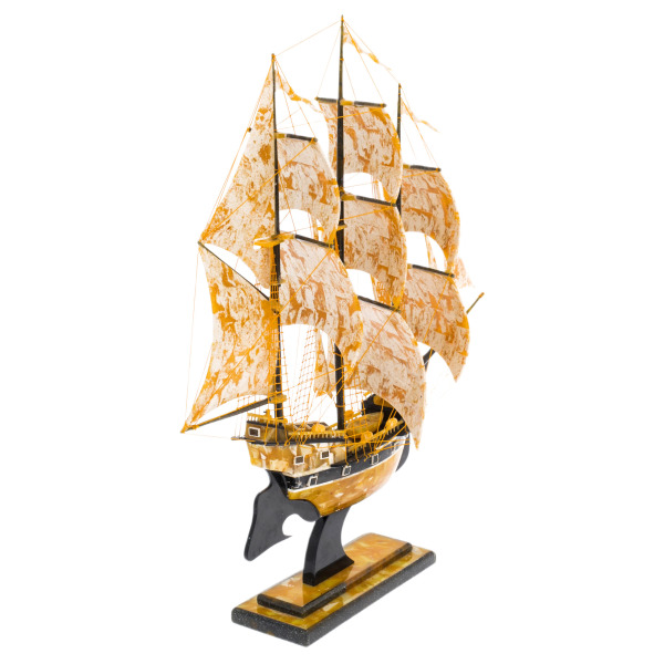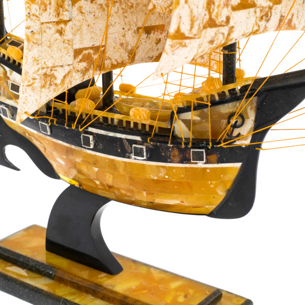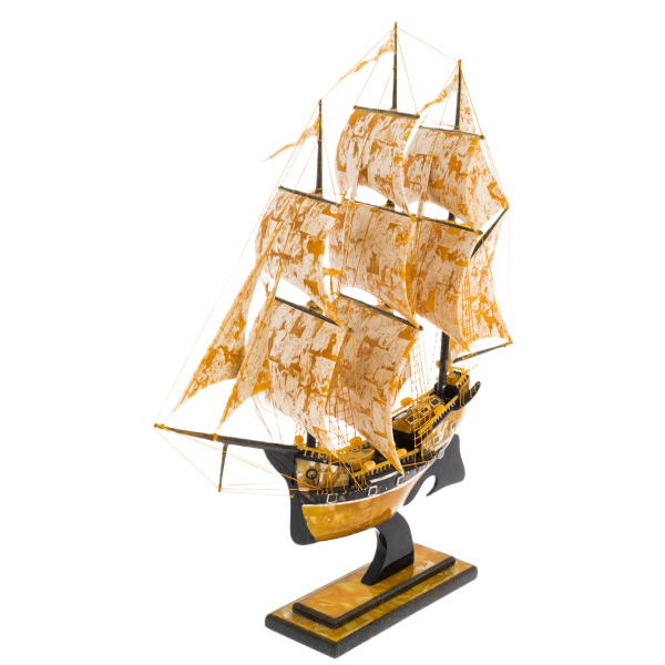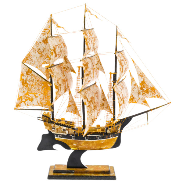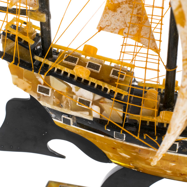 Каждая деталь изделия соткана из янтарных оттенков, играющих на свету золотистыми бликами. Паруса, будто наполненные ветром приключений, излучают теплую энергетику древнего смолистого минерала, связывая время и пространство. Тонкие линии вантов напоминают о хрупкости равновесия и одновременно о прочности воли — именно такие качества отличают истинного лидера.