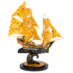 Статуэтка янтарная "Корабль"Статуэтка янтарная "Корабль"Янтарь – волшебный камень, сочетающий в себе целебные и магические свойства, роскошь и тепло. Большинство знаменитых личностей окружали себя янтарем: янтарная комната Петра 1 и корона египетского фараона Тутанхамона - это лишь начало списка. Изящные изделия вписываются в любой интерьер. Сочетание янтаря с серебром или бронзой выгодно подчеркивает красоту камня и благородный блеск драгоценных металлов.