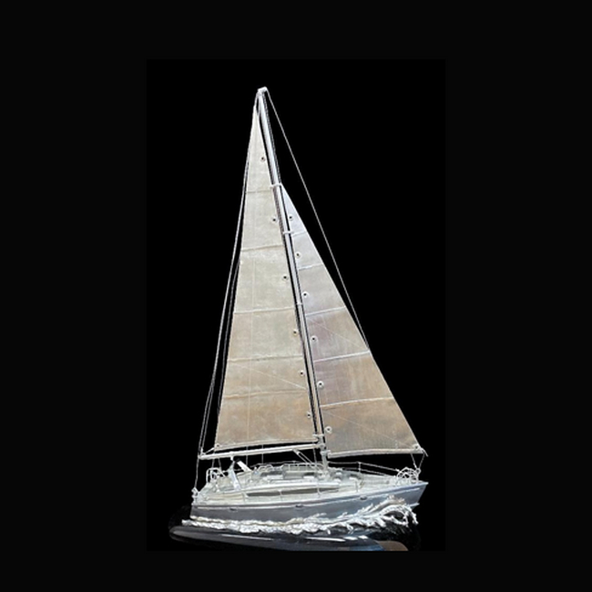 Откройте для себя удивительный мир морского путешествия с нашей эксклюзивной моделью парусной яхты "Beneteau Oceanis 45". Это изделие, выполненное вручную из серебра 925 пробы и обсидиана, представляет собой воплощение морского искусства и инженерного мастерства, где каждая деталь тщательно проработана, чтобы передать все нюансы реальной яхты.