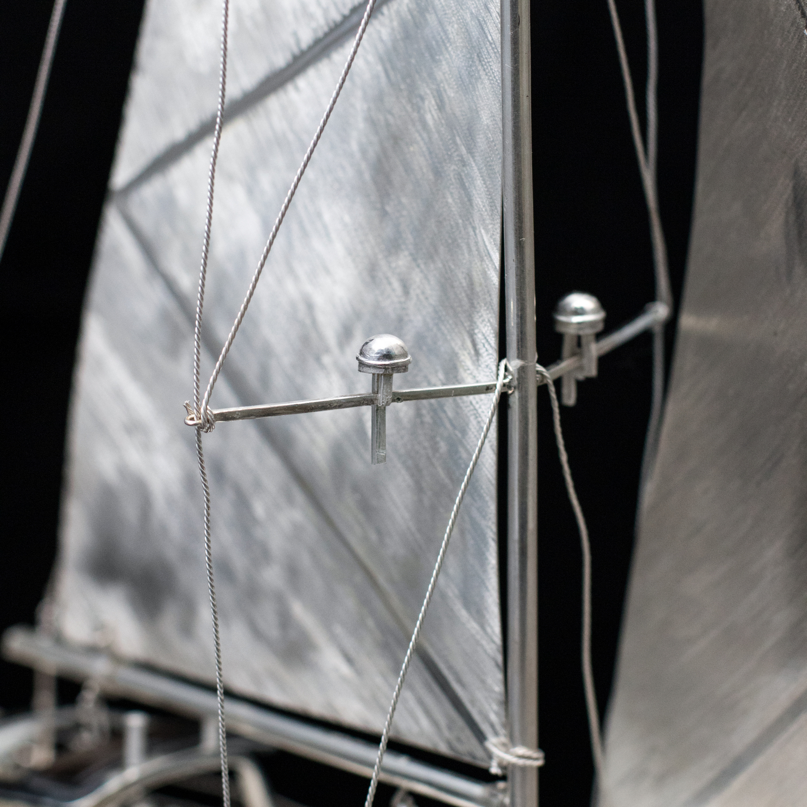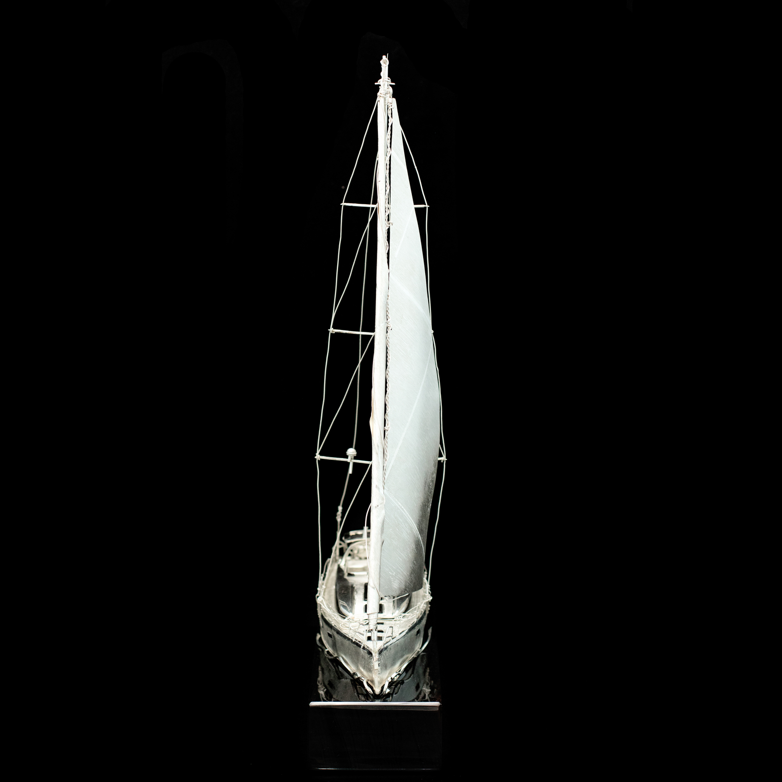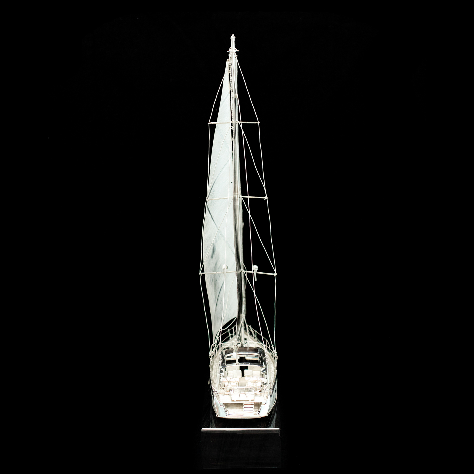 Каждая часть яхты, от такелажа до парусов, выполнена с использованием особых ювелирных техник, благодаря чему модель передает все нюансы реальной яхты. Масштаб 1:43 позволяет в полной мере оценить красоту и сложность конструкции, делая эту яхту великолепным произведением искусства.