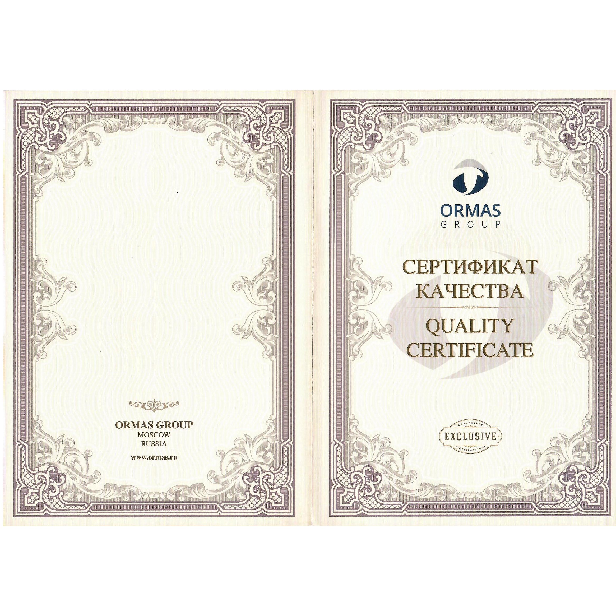 Изделие комплектуются премиальной упаковкой, а также именным сертификатом качества ювелирного дома ORMAS, подтверждающим достоверность заявленных характеристик.