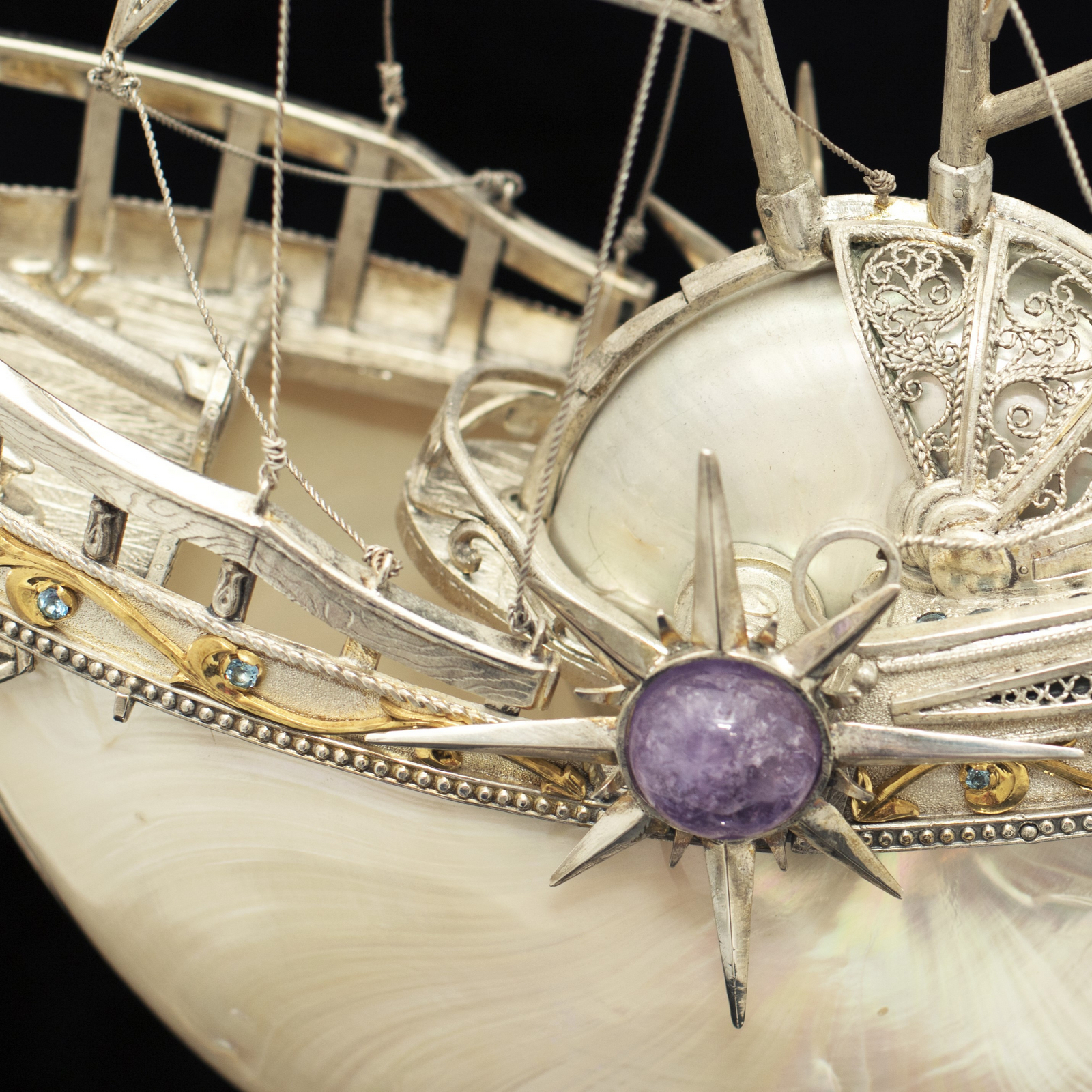Серебряный корабль "Морская жемчужина" с раковиной Nautilus