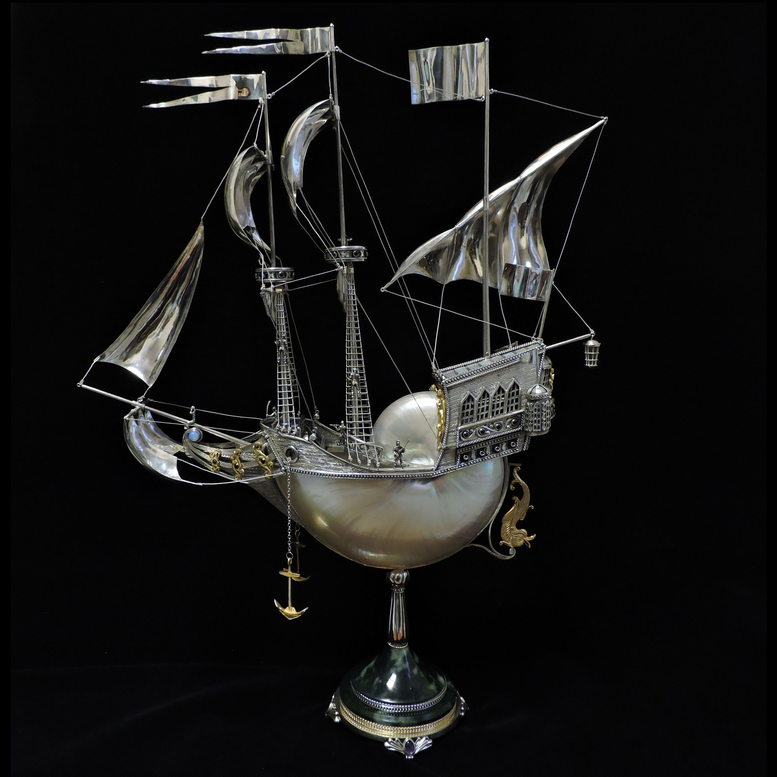 Серебряный корабль "Морской бриз" с раковиной Nautilus