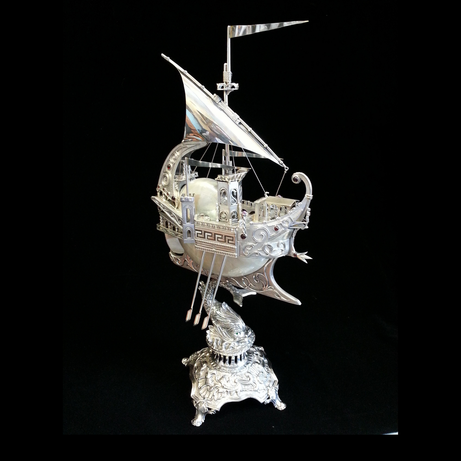 Серебряный корабль "Морской дворец" с раковиной Nautilus