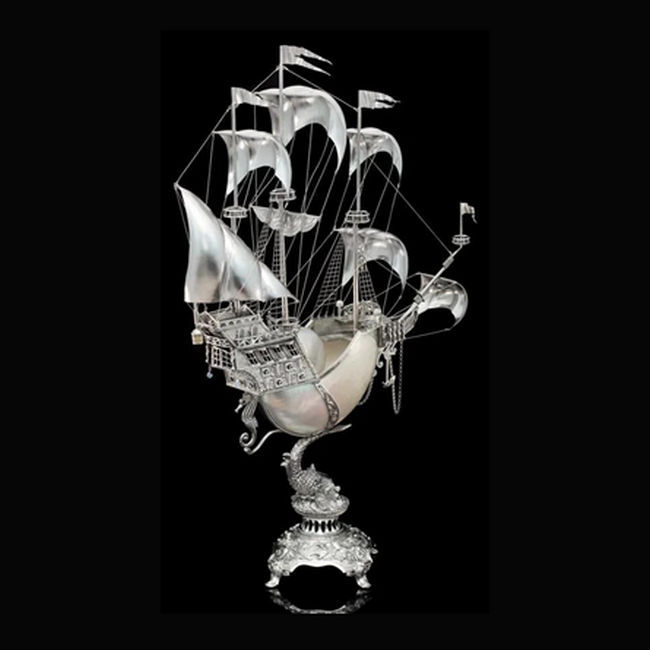 Серебряный корабль "Созвездие" с раковиной Nautilus