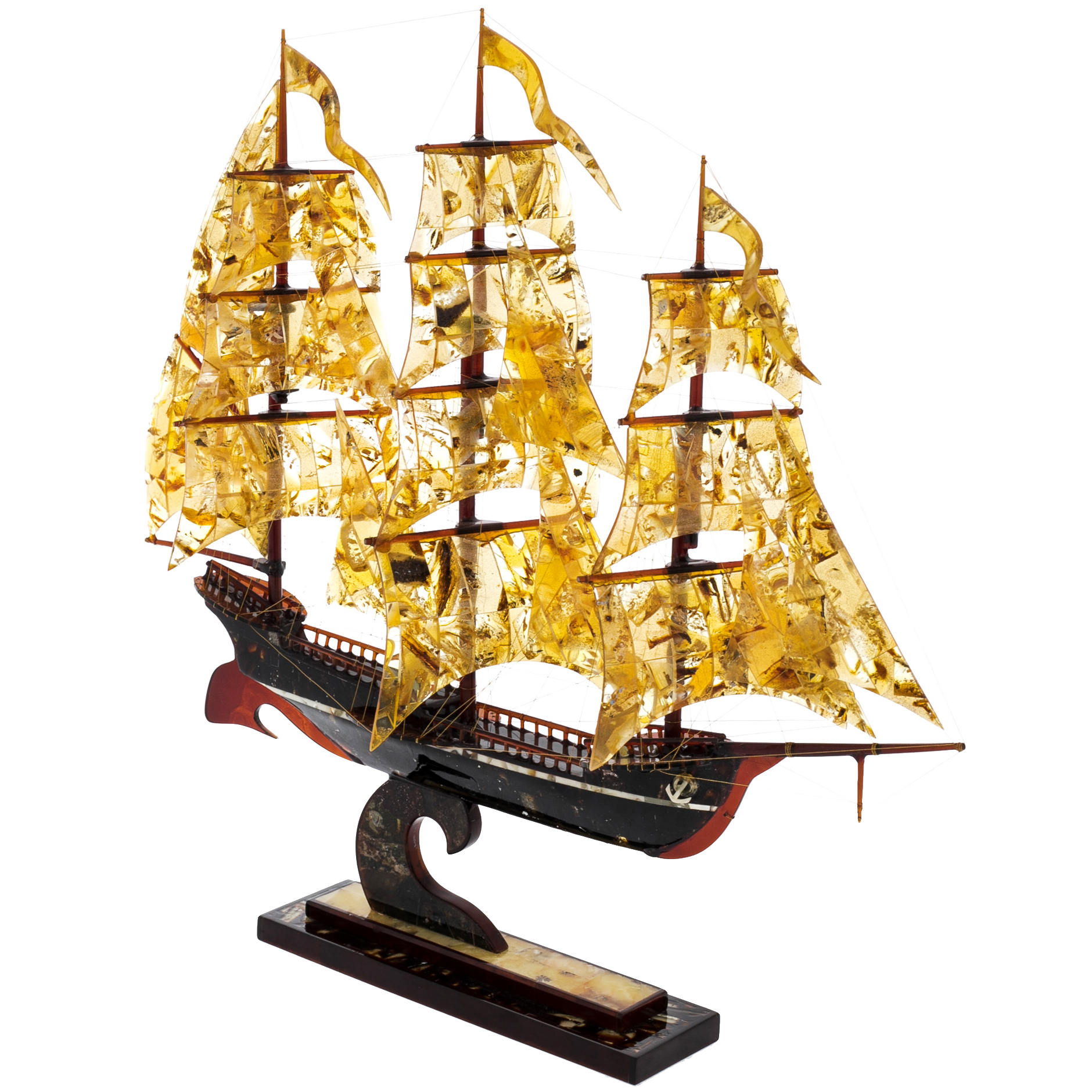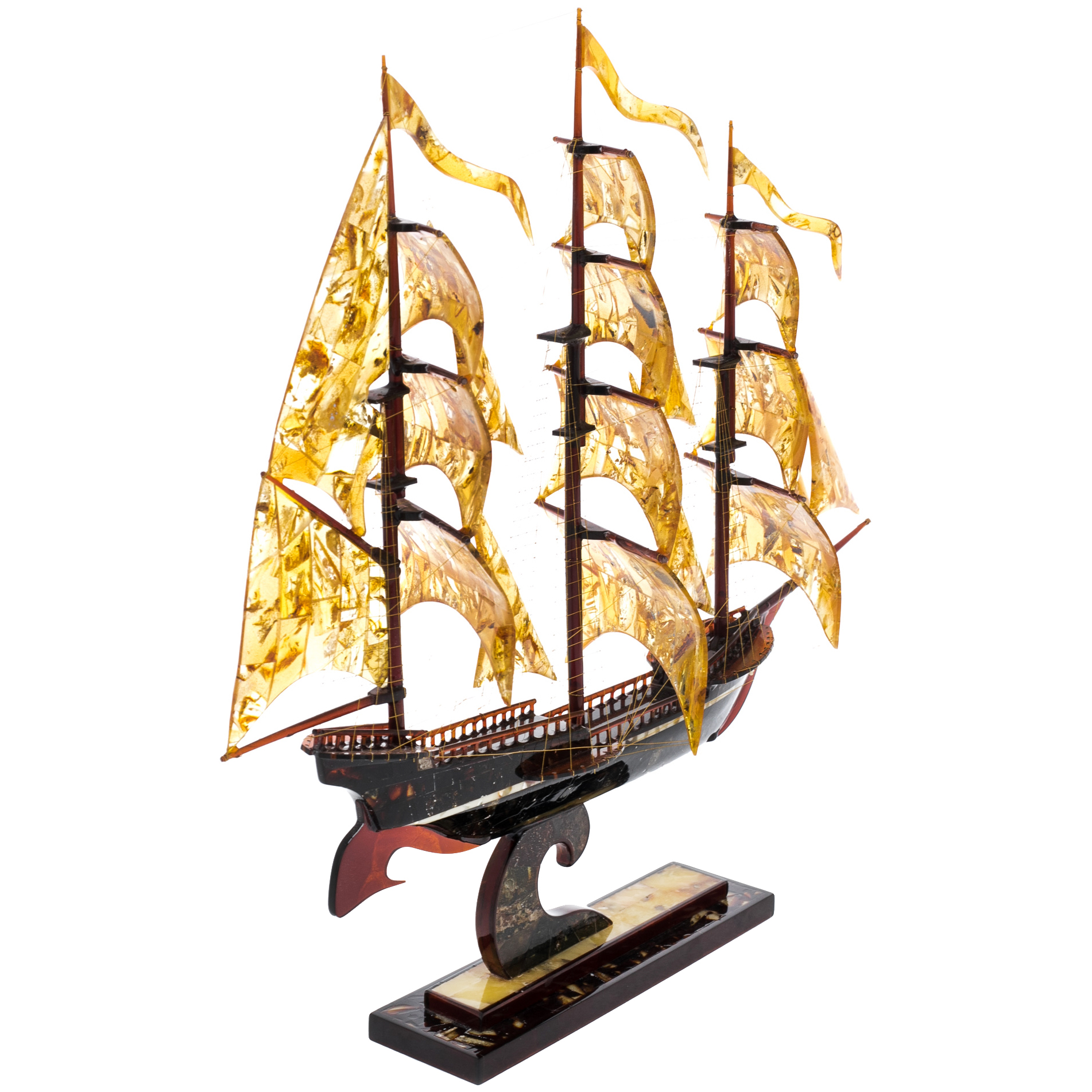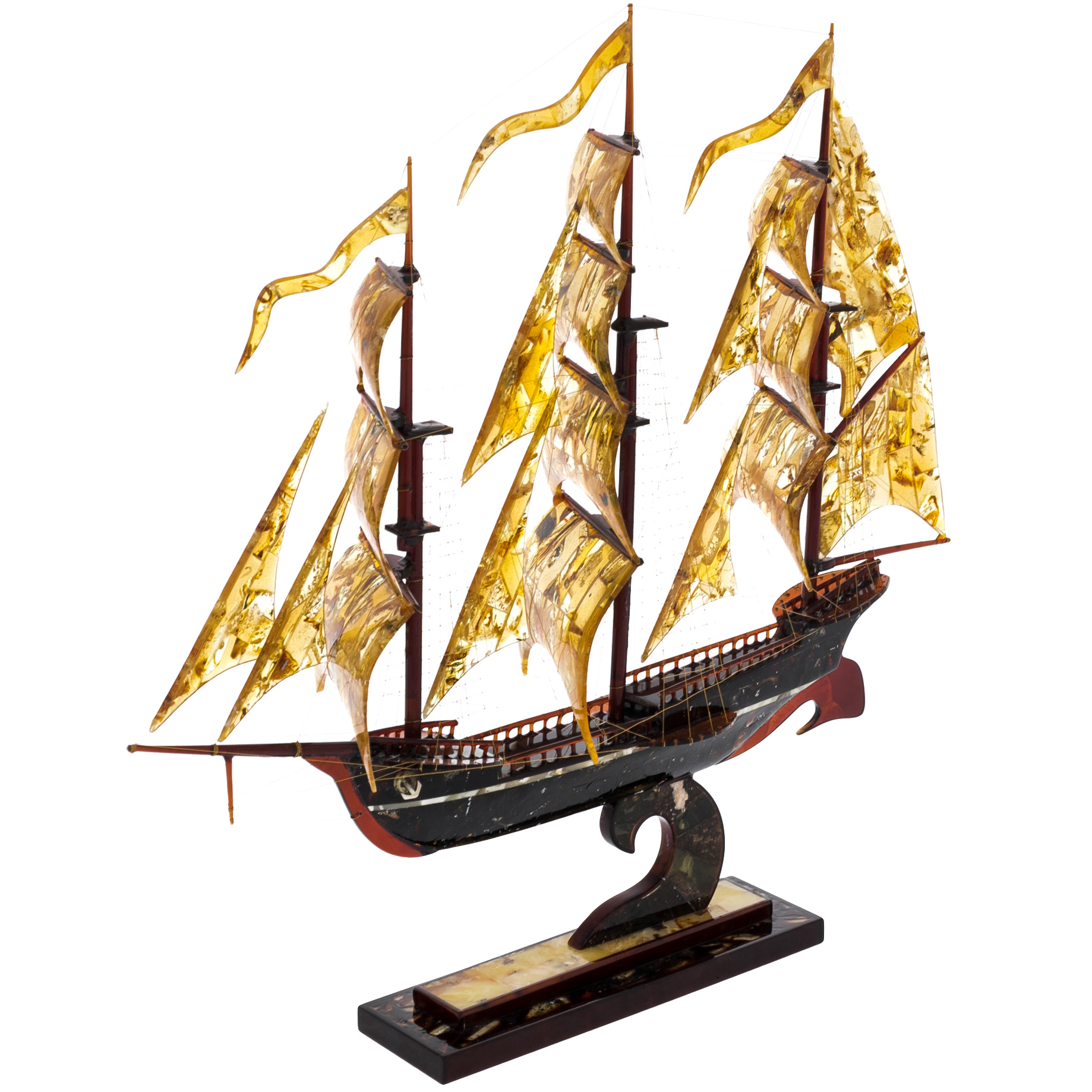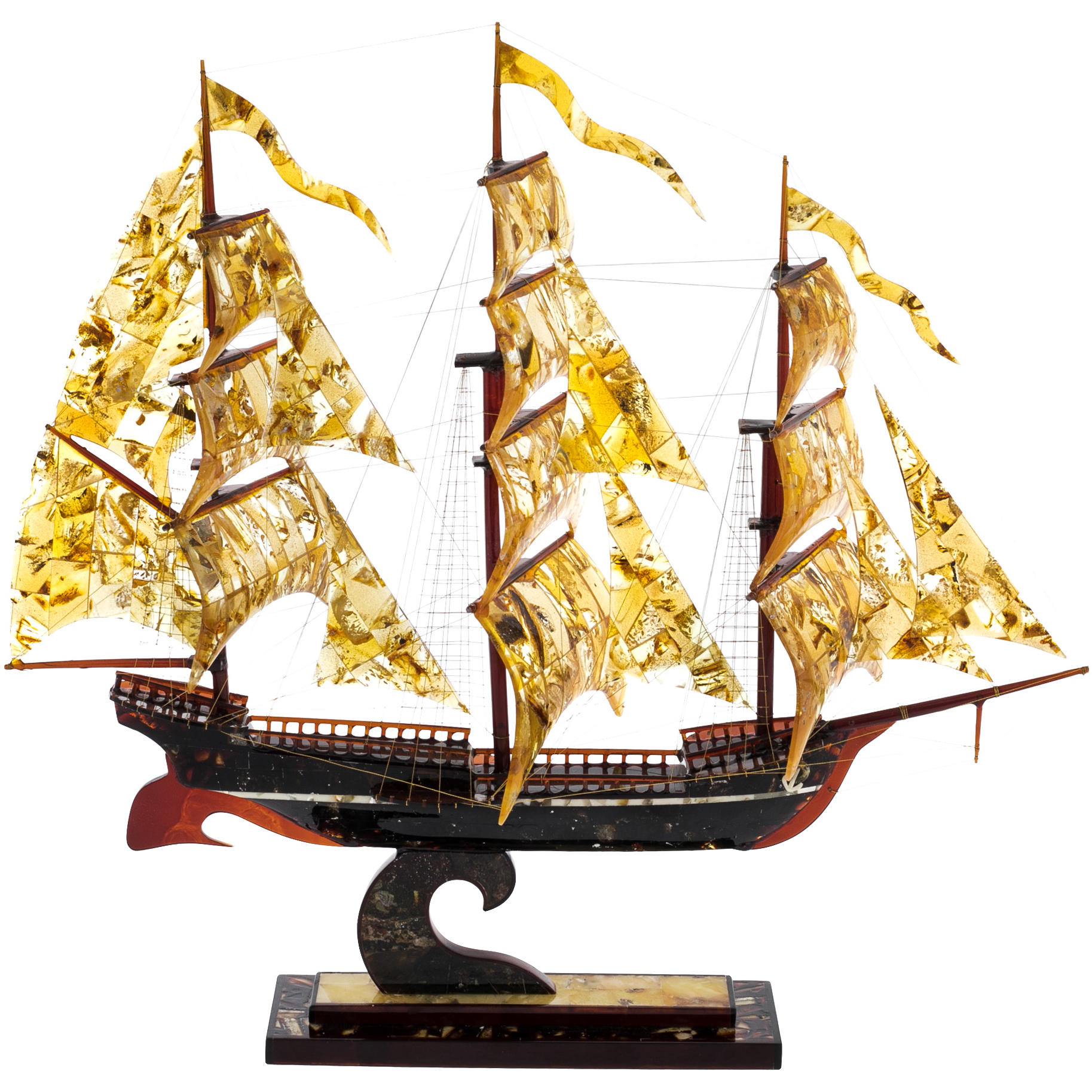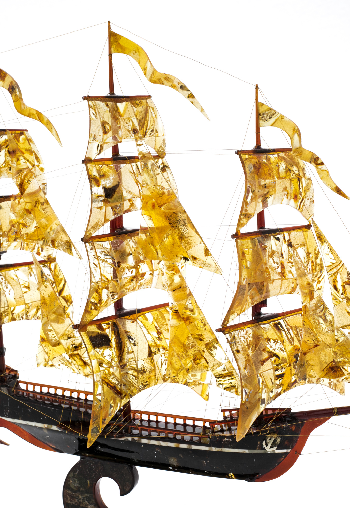 Умелые руки мастера собрали эту невероятно детализированную, проработанную до мелочей модель из натурального балтийского янтаря. Каждая деталь выполнена из солнечного камня – даже легкие полупрозрачные паруса.