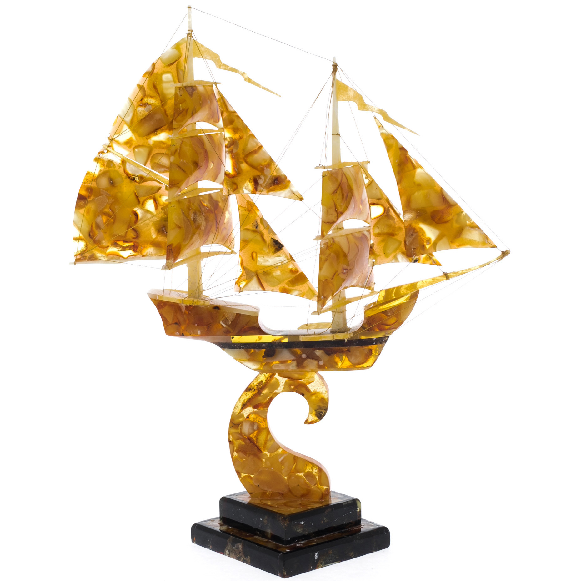 Корабли и парусники из натурального янтаря — это замечательный сувенир, а также предмет интерьера, который всегда будет напоминать вам о море, а ведь именно оно, Балтийское море, является местом, где рождался этот удивительный солнечный камень.