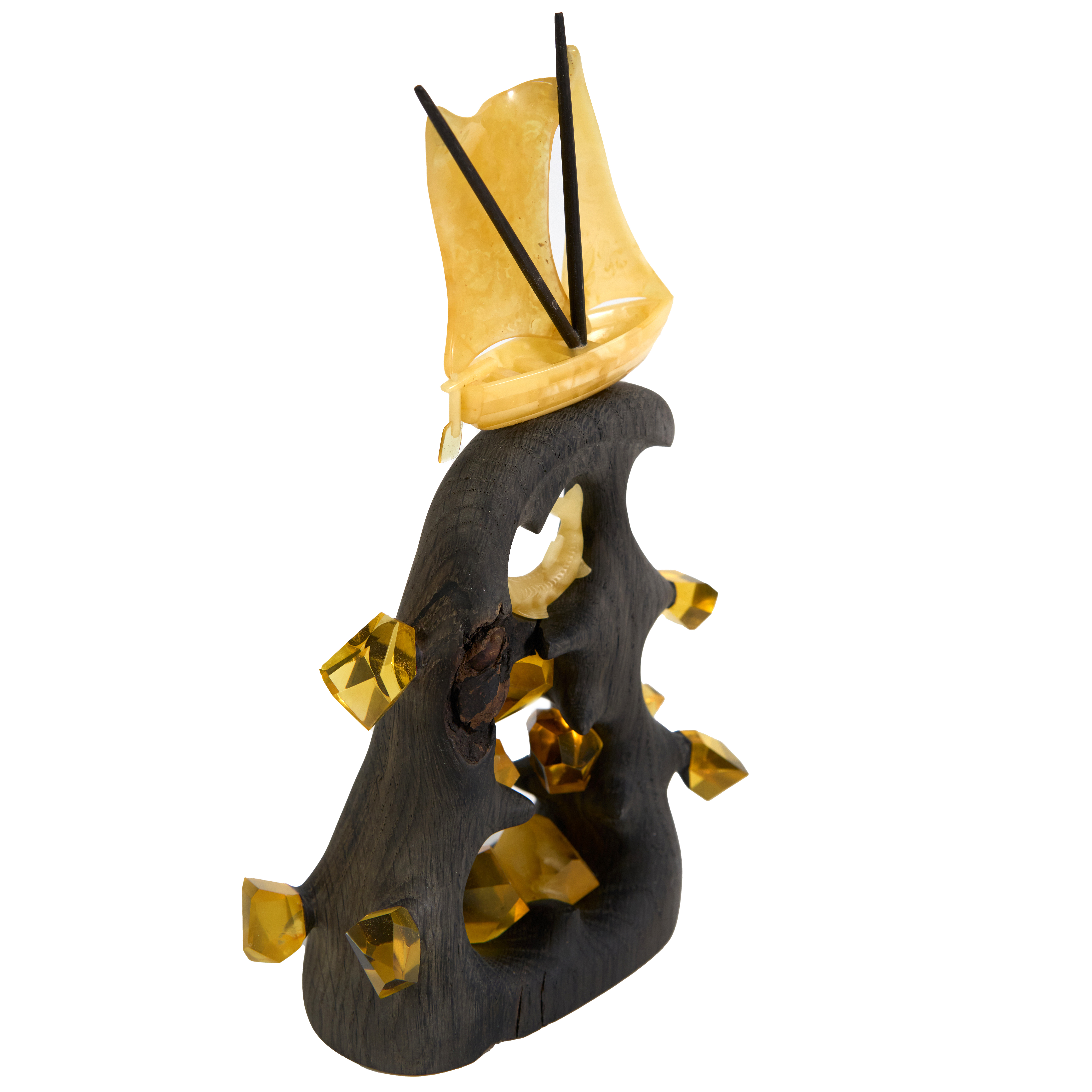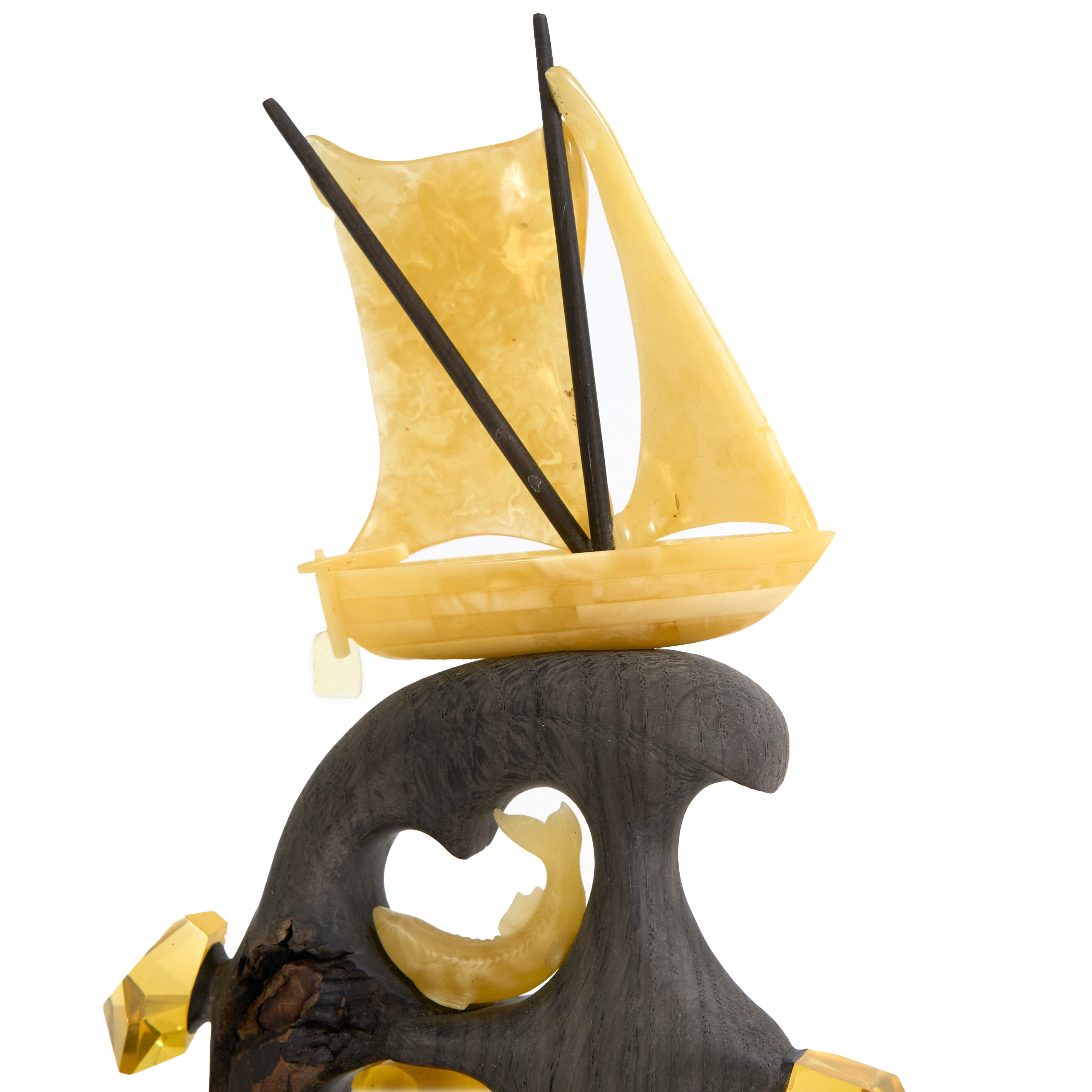 Статуэтка из янтаря "Корабль" на мореном дереве