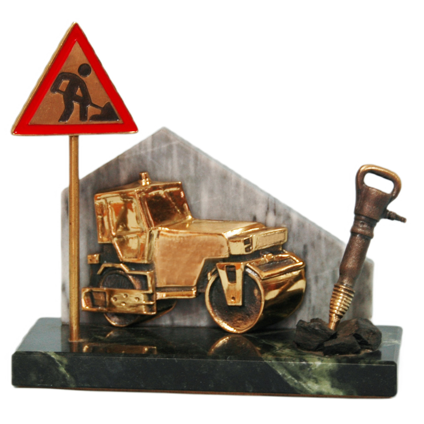 Сувенир из бронзы и змеевика "Дорожно-ремонтные работы"