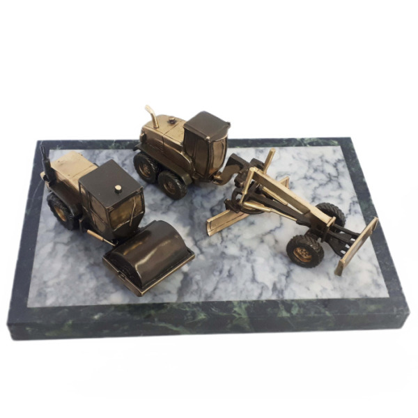 Сувенир из бронзы, мрамора и змеевика "Дорожная спецтехника"