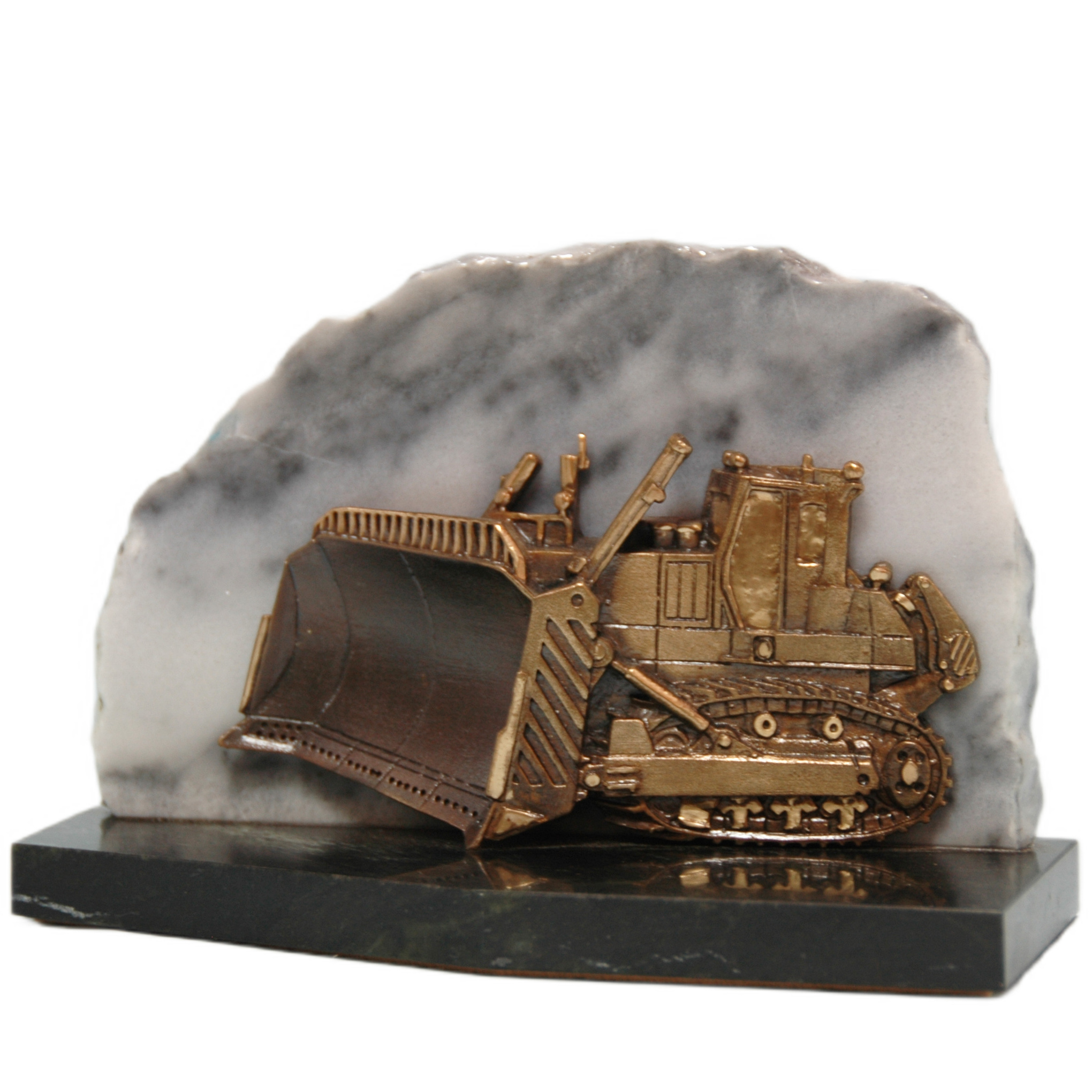 Сувенир из бронзы, мрамора и змеевика "Карьерный бульдозер"