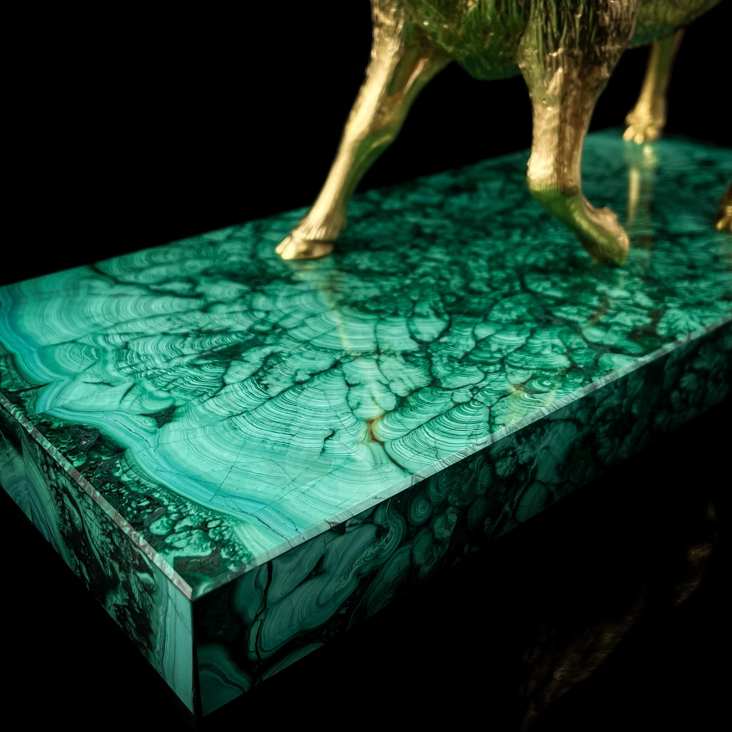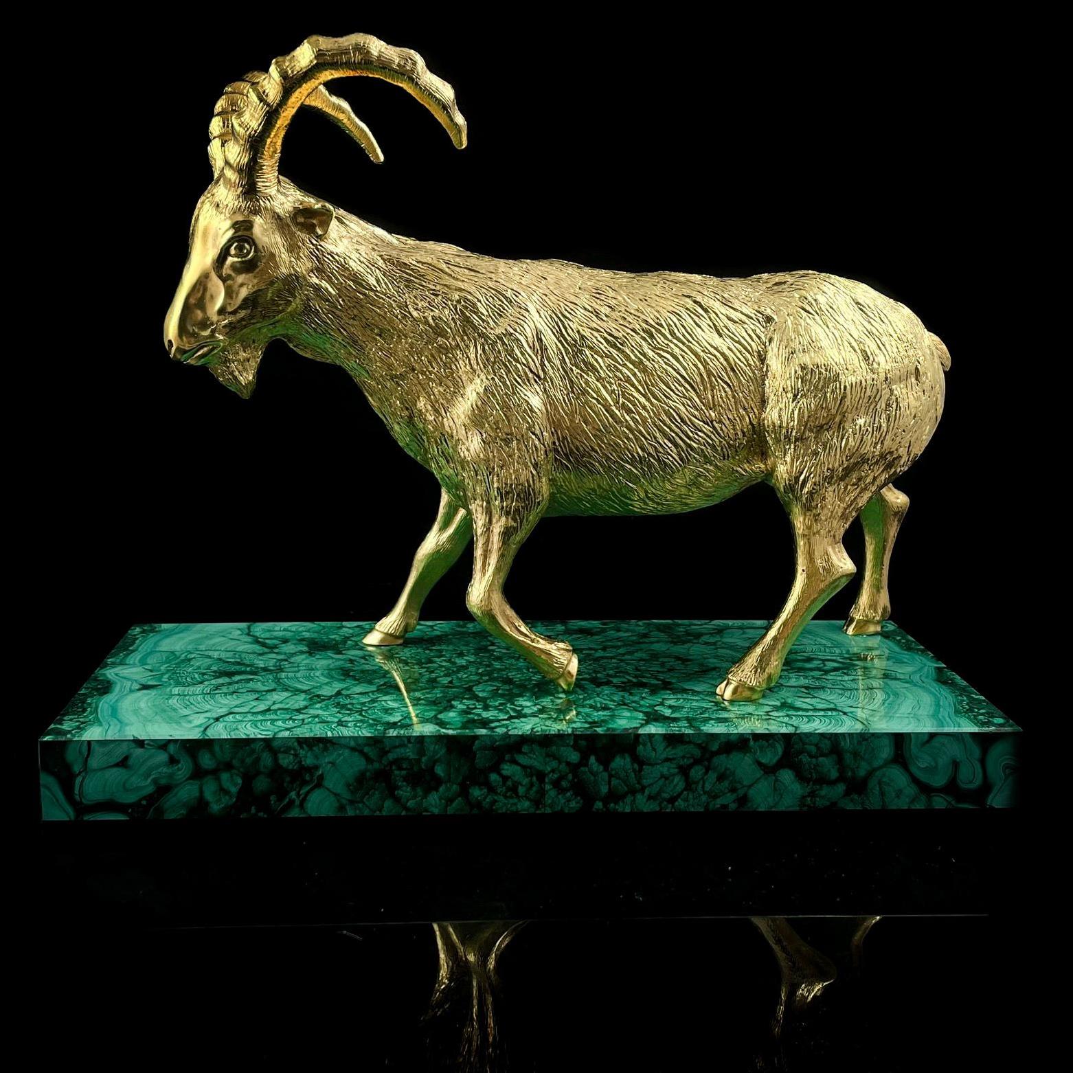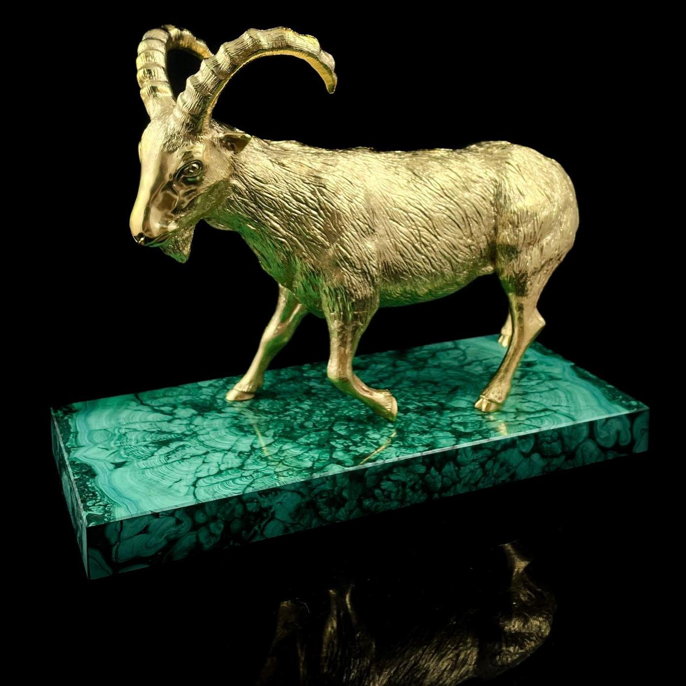 Статуэтка позолоченная "Золотой Козерог" на подставке из малахита
