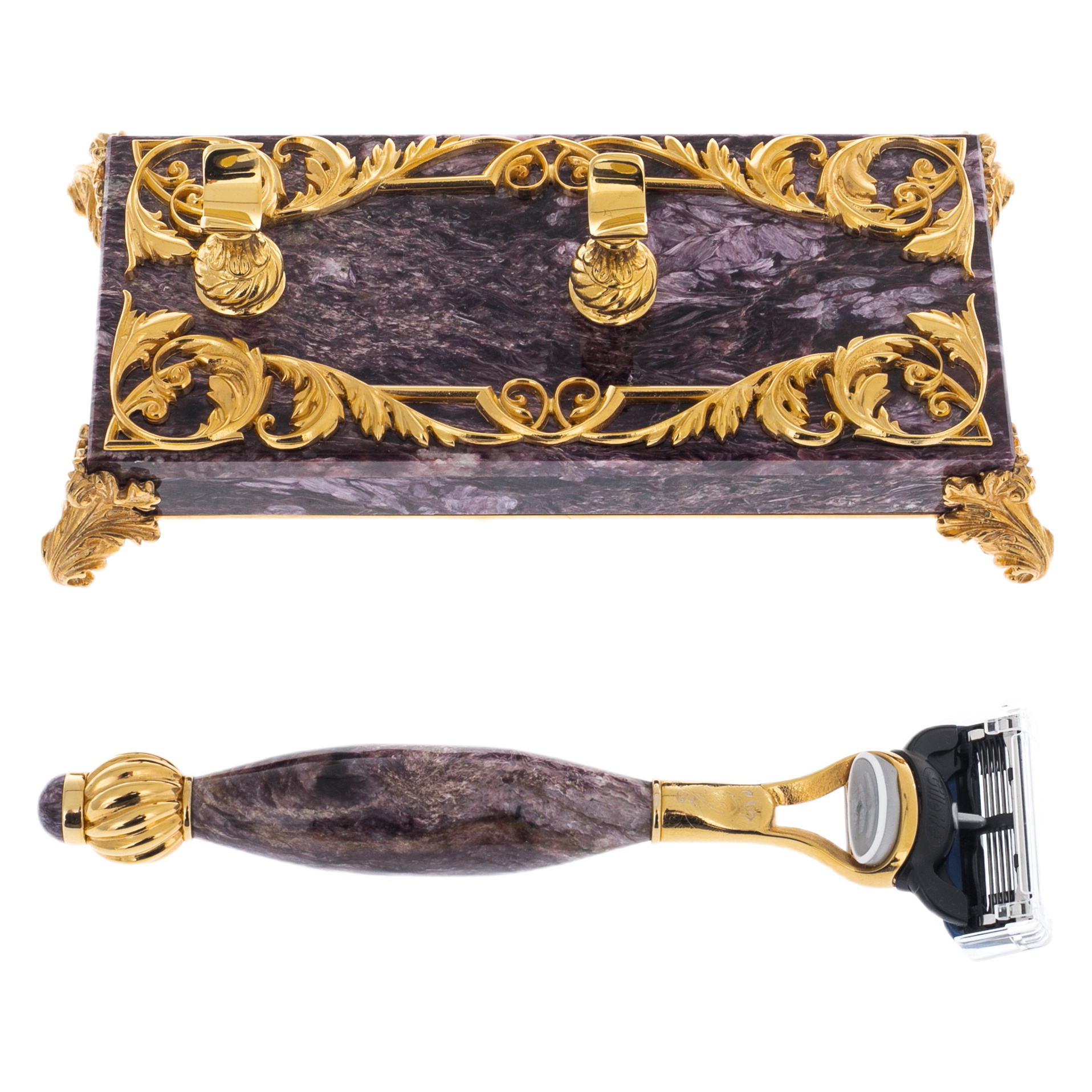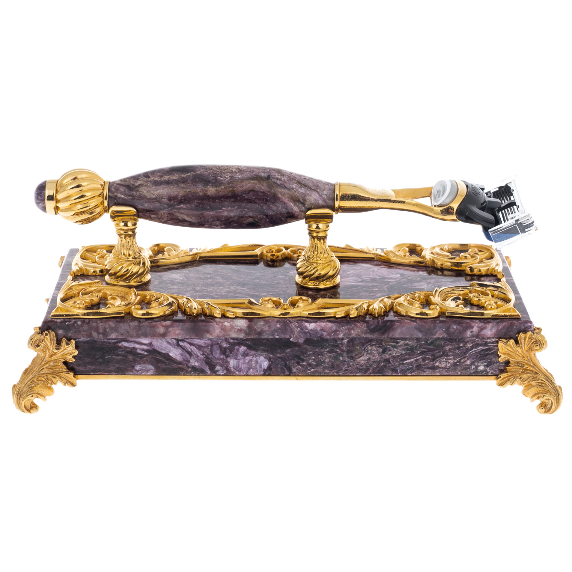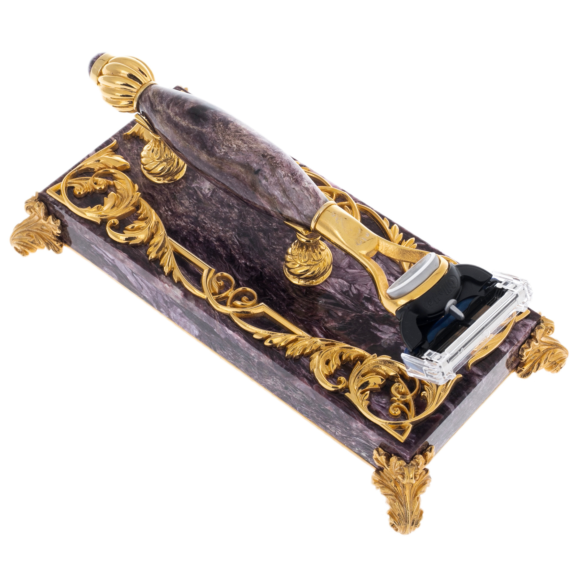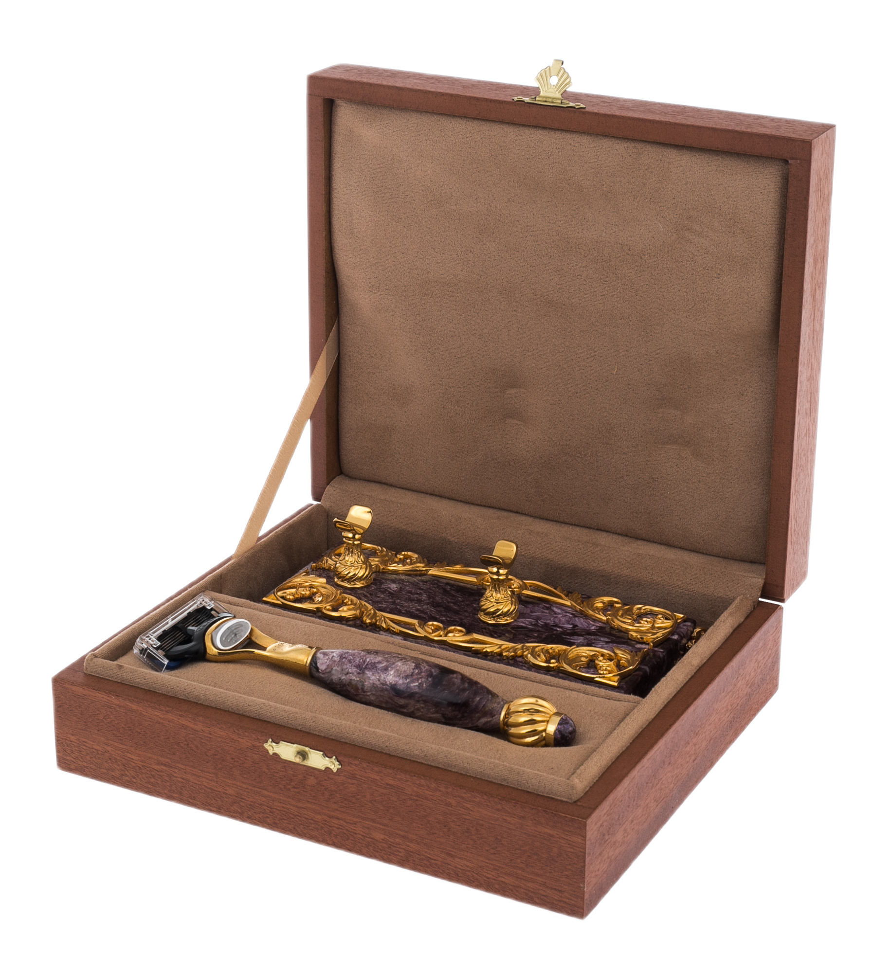 Бритвенный станок "Успех" на подставке из чароита, Златоуст