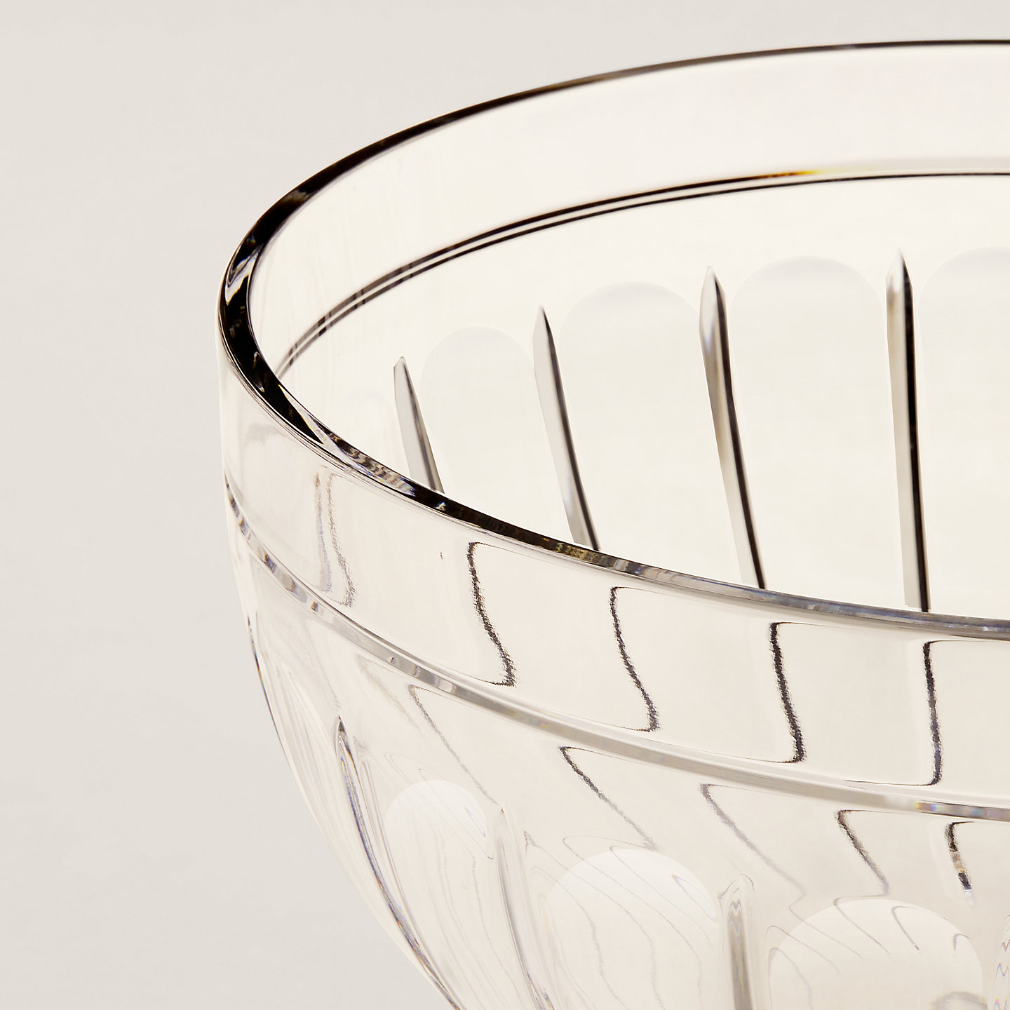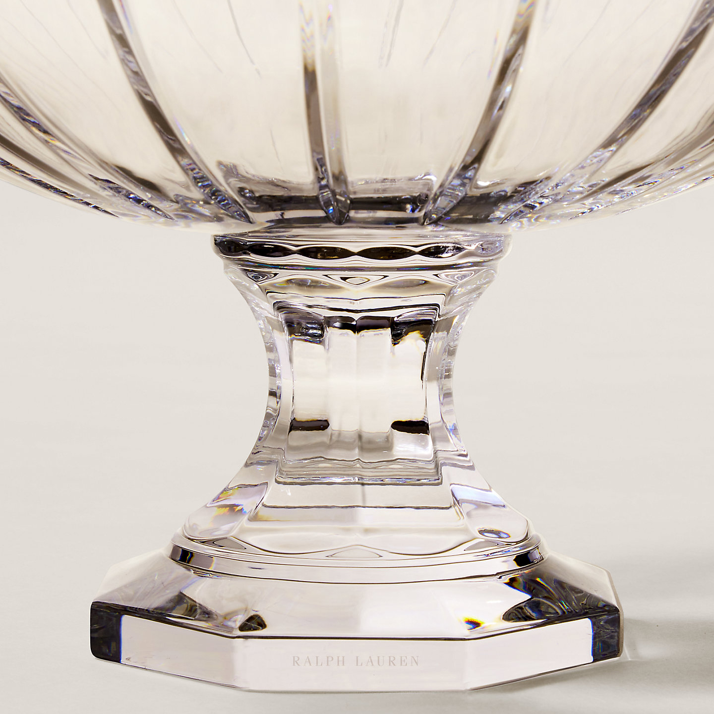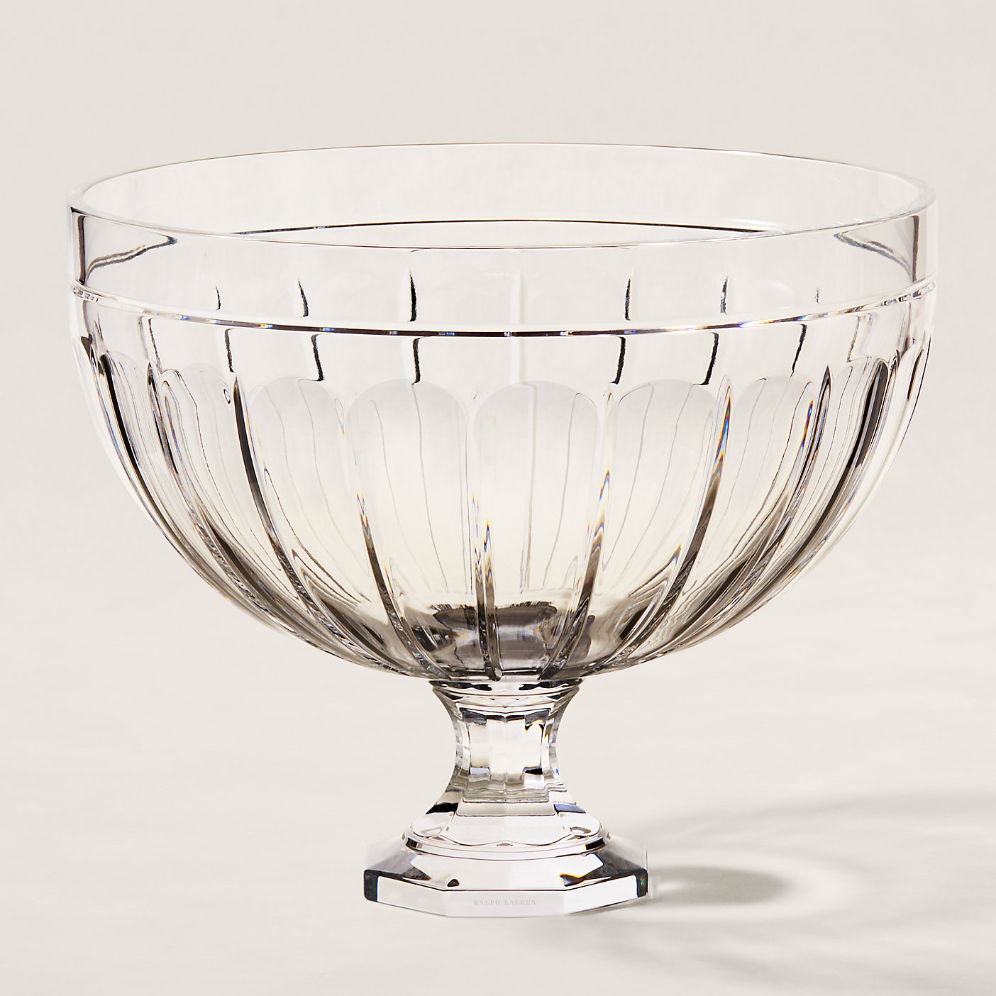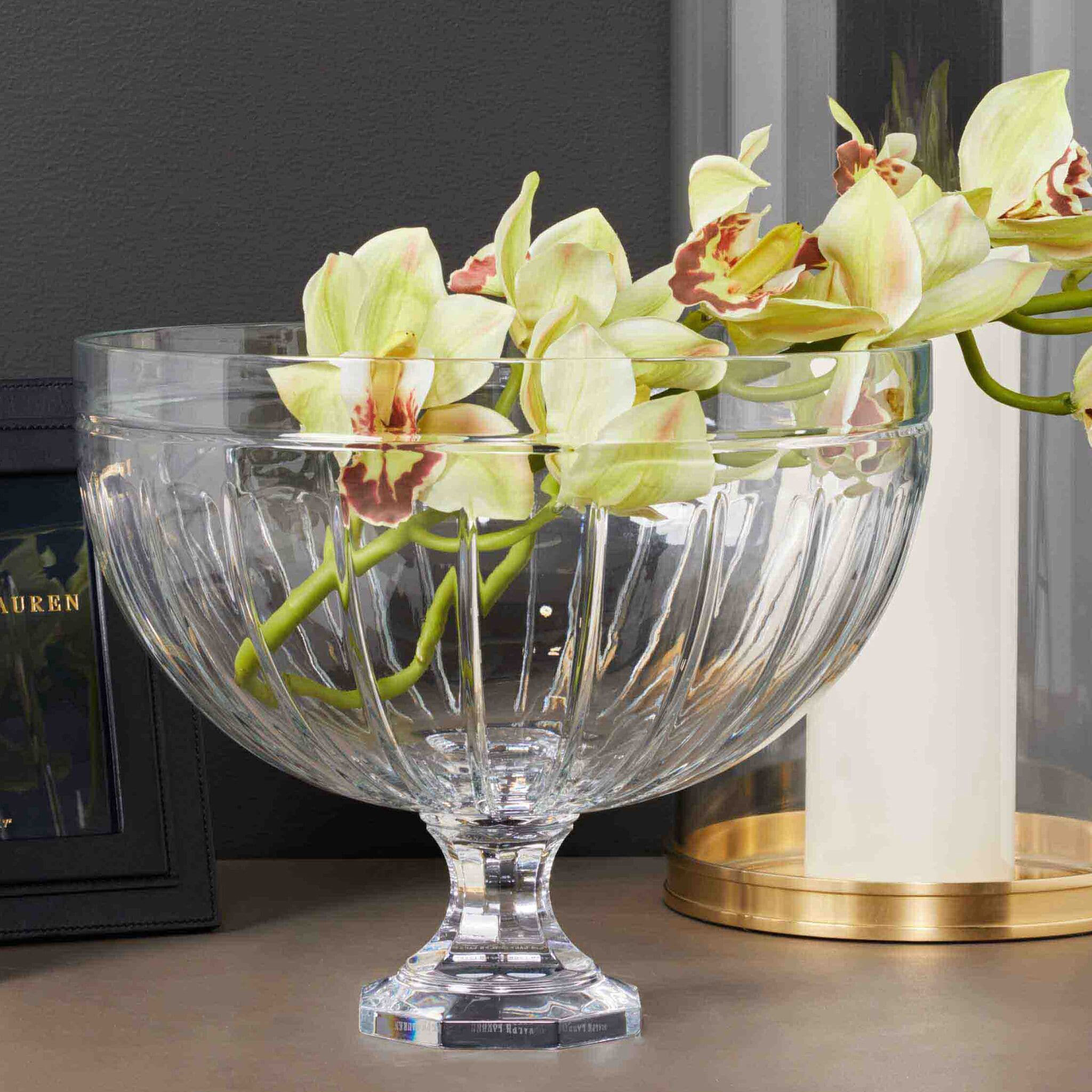 Изящные грани ручной огранки подчеркивают изящный силуэт центральной чаши Coraline от Ralph Lauren, искусно изготовленной из хрусталя высокой чистоты.