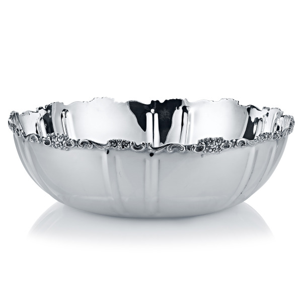 Воплощение аристократизма, символизирующее изобилие и утонченность – круглая чаша «Виноградная лоза» из столового серебра является настоящим произведением ювелирного искусства. Ее безупречные линии, плавные изгибы и изысканная декоративная отделка создают образ, достойный королевских пиршеств.