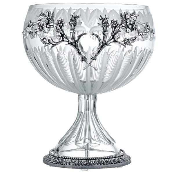 Хрустальная чаша, обработанная вручную, сияет как драгоценный алмаз, её грани переливаются в свете, подобно бликам солнца на мраморе древних форумов. Бронзовый декор, сплетающийся в венки и гирлянды, словно наследует орнаментам, украшавшим триумфальные арки и дворцовые фризы. Символика лавровых ветвей — знак победы и славы, достойной сильных мира сего.