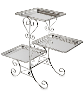 Этажерка для сервировки "Аллегретто" Этажерка для сервировки "Аллегретто" Особое ощущение торжества создает этажерка. Используют для подачи фруктов, разнообразных сладостей. Этажерка действительно незаменима на праздничных столах, так как весьма вместительна, экономит место на столе, создает праздничную атмосферу, эффект изобилия. Самыми удобными и востребованными являются этажерки на 2-3 яруса.
