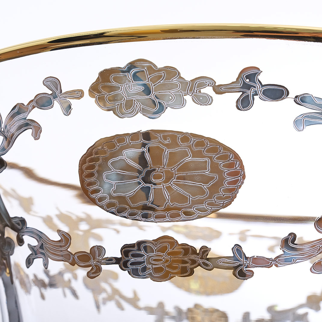 Каждое изделие – предмет сервировки или интерьерный аксессуар, отличаются уникальностью дизайна и безупречным качеством. Причем качество касается не только используемых материалов, но и техники нанесения узоров. Золотыми вензелями, выполненными в различном стиле, можно любоваться бесконечно, а их многообразие поражает воображение. Флористическая направленность, готический стиль и выверенная геометрия, а также комбинации перечисленных направлений создают тот самый дух коллекции, присущий только этим изделиям.