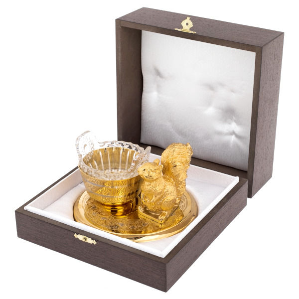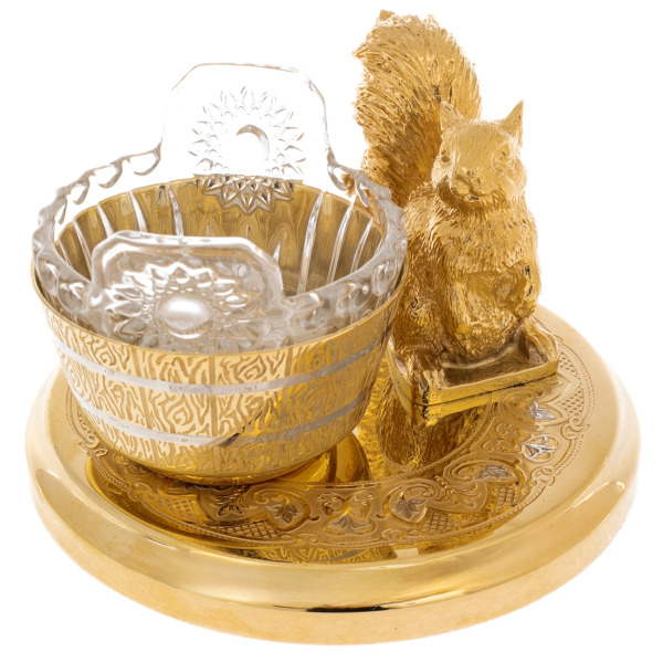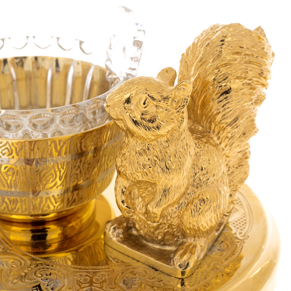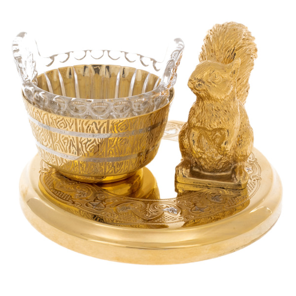 Изделие выполнено из латуни с позолотой и никелевым покрытием. Эта орешница — не просто изысканный предмет сервировки, а символ уюта, достатка и щедрости. Она украсит праздничный стол, добавив ему нотку старинной сказки, и станет прекрасным подарком для тех, кто ценит красоту, созданную с любовью и вдохновением.