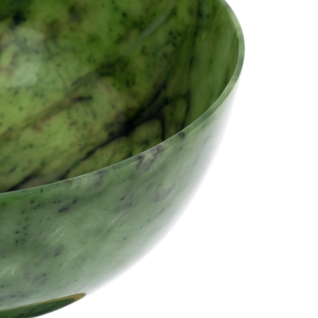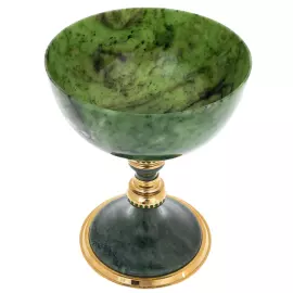 Нефрит, материал, издавна ценящийся за свои качества и красоту, в этой вазе предстает во всем своем величии. Темно-зеленый оттенок камня символизирует рост, возрождение и спокойствие, создавая атмосферу покоя и благополучия в любом пространстве.
