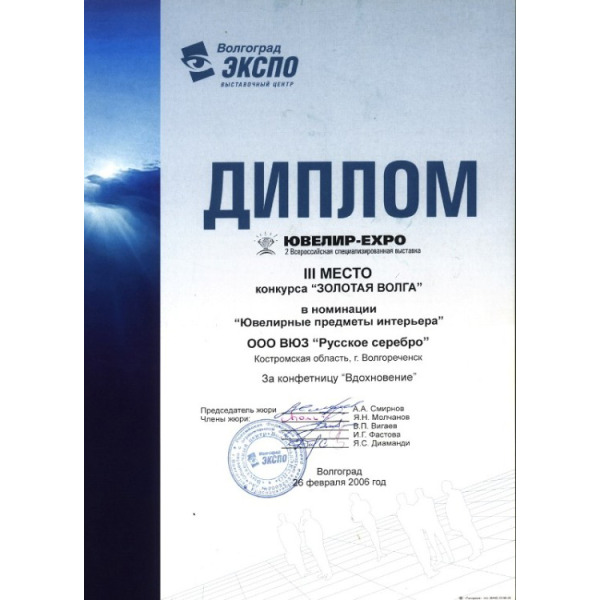 Искусство русских ювелиров — серебряников имеет большое значение для культуры и развития промыслов России. Внести свой вклад в сохранение и развитие этого вида искусства является наиважнейшей из задач, которые ставит перед собой Волгореченский ювелирный завод «Русское серебро».
