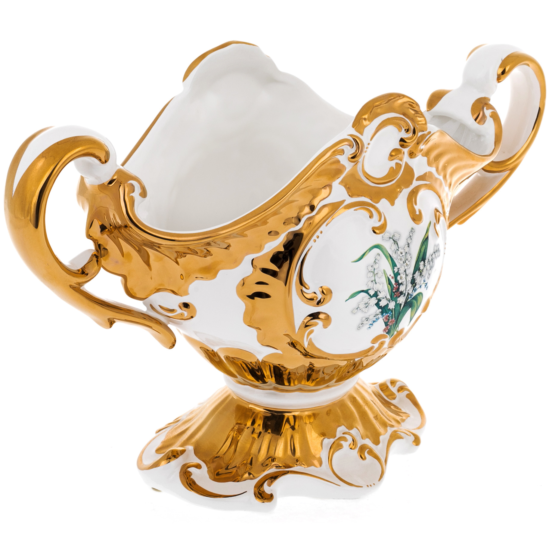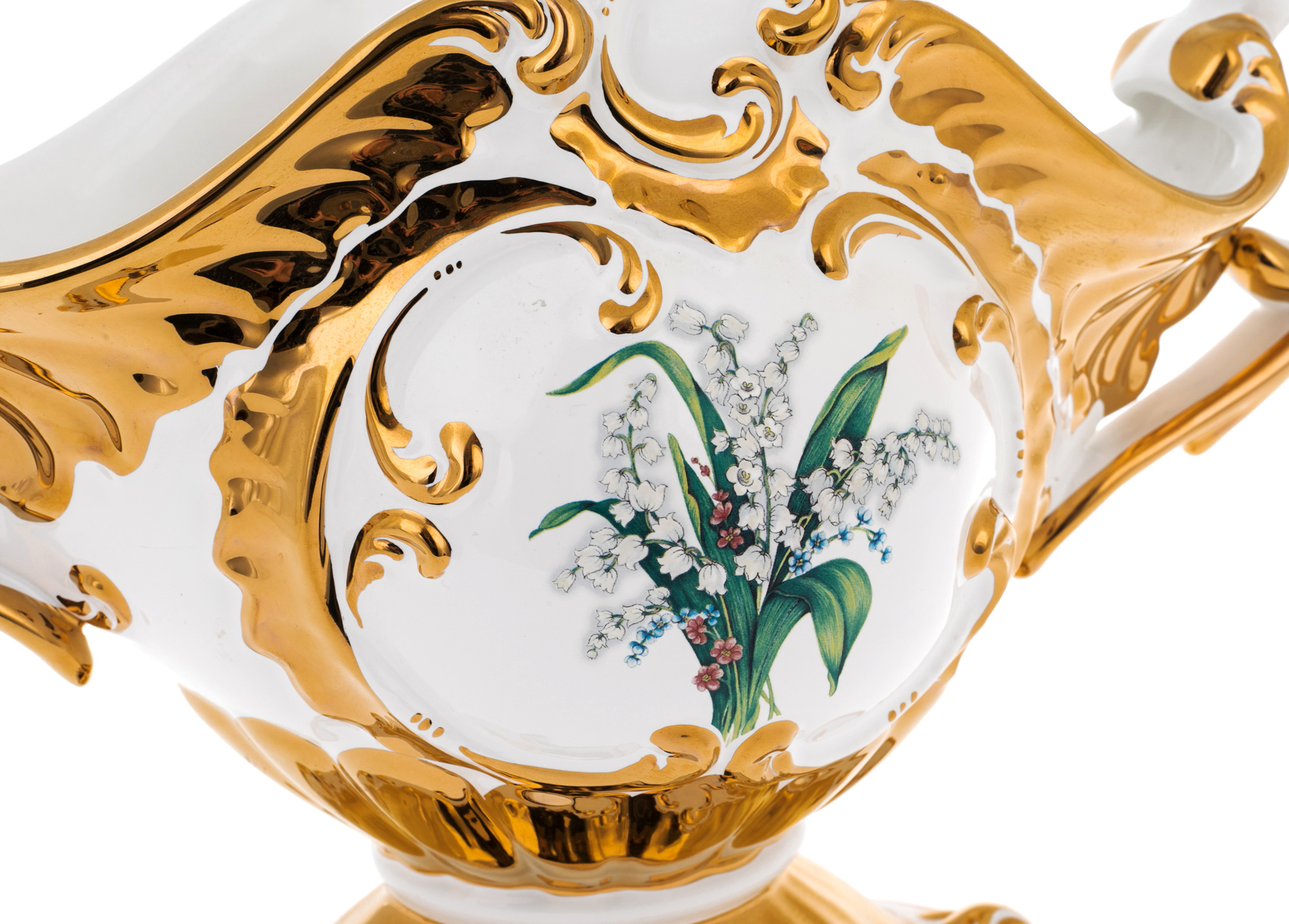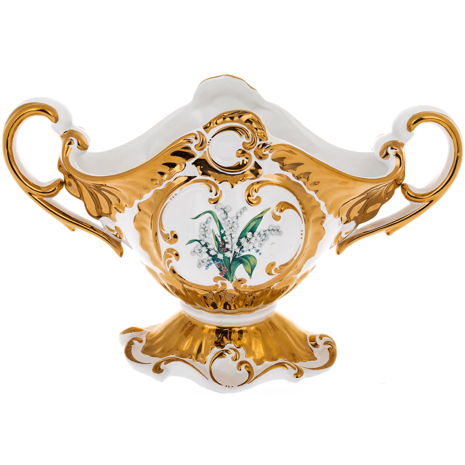Ваза для фруктов "Барокко - Ландыши", цвет: белый с золотой отделкой