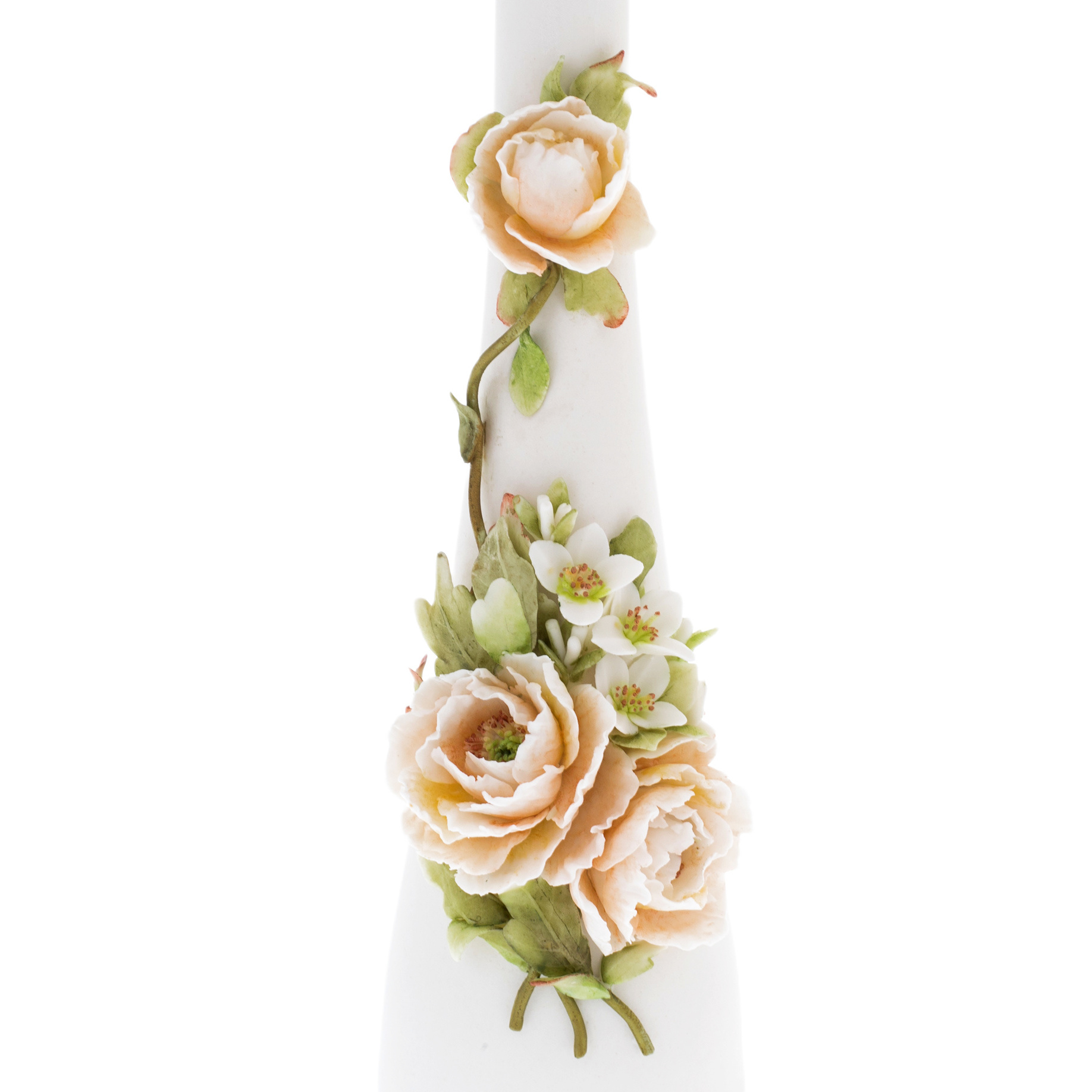 Особенности оформления: объемная лепнина, надглазурная роспись, краски металлик, шликерная роспись, 12% препарат жидкого золота или платины, соли.